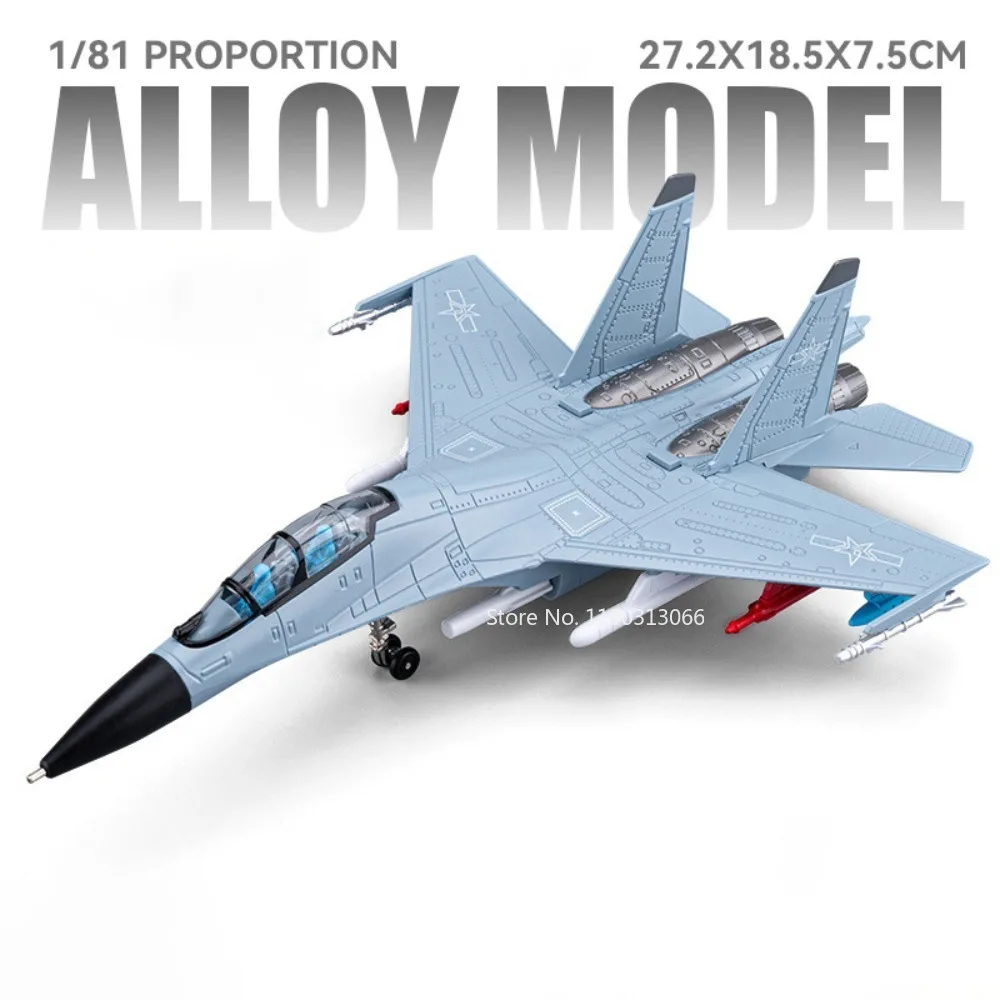 Elevate your collection with this highly detailed 1:81 scale diecast J-16 multirole fighter aircraft model, measuring approximately 27.2 cm long, 18.5 cm wide, and 7.5 cm tall. Crafted from zinc metal with a plastic chassis and rubber tires, it offers exceptional durability. The model features an openable cockpit, realistic panel lines, and markings, all in a sleek gray or vibrant yellow finish that highlights its modern, military aesthetic. Functional with sound, light, and pull-back mechanisms, all powered by included batteries, this high-fidelity aircraft is perfect for enthusiasts aged 14 and above to display or showcase.
