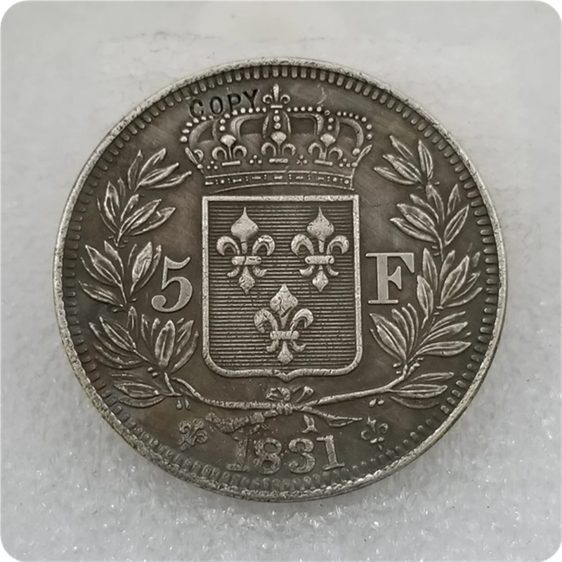 Discover the exquisite COPY REPLICA 1831 France Henri V 5 Francs Coin, a striking piece crafted to enhance your collection. This replica features a detailed portrait of Henry V, King of France, elegantly showcased against a muted silver finish. The inscription “COPY” boldly indicates that it is a replica, ensuring clarity and authenticity in your display. Made from high-quality alloys, this replica coin captures the essence of historical currency without containing precious metals. Perfect for collectors and enthusiasts, it’s a valuable addition that evokes the charm of history while remaining true to its replica nature.