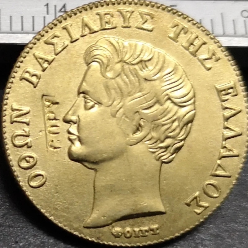 Immerse yourself in history with this exquisite replica inspired by the 1833 Greece 20 Drachmai coin featuring King Othon. Crafted from durable metal, it boasts a luxurious vintage European antique finish that mimics centuries-old craftsmanship. The detailed embossed relief work highlights the sharp, finely carved profile of King Othon facing left, with textured wavy hair and refined facial features that bring a lifelike quality. Latin inscriptions, including “ΒΑΣΙΛΕΥΣ ΤΗΣ ΕΛΛΑΔΟΣ” and “ROYAL,” encircle the portrait, emphasizing its regal heritage. An ornate beaded border frames the design, adding an extra layer of elegance. This piece exudes historical charm, making it an ideal collectible or display item that elevates any collection with its authentic antique aesthetic.