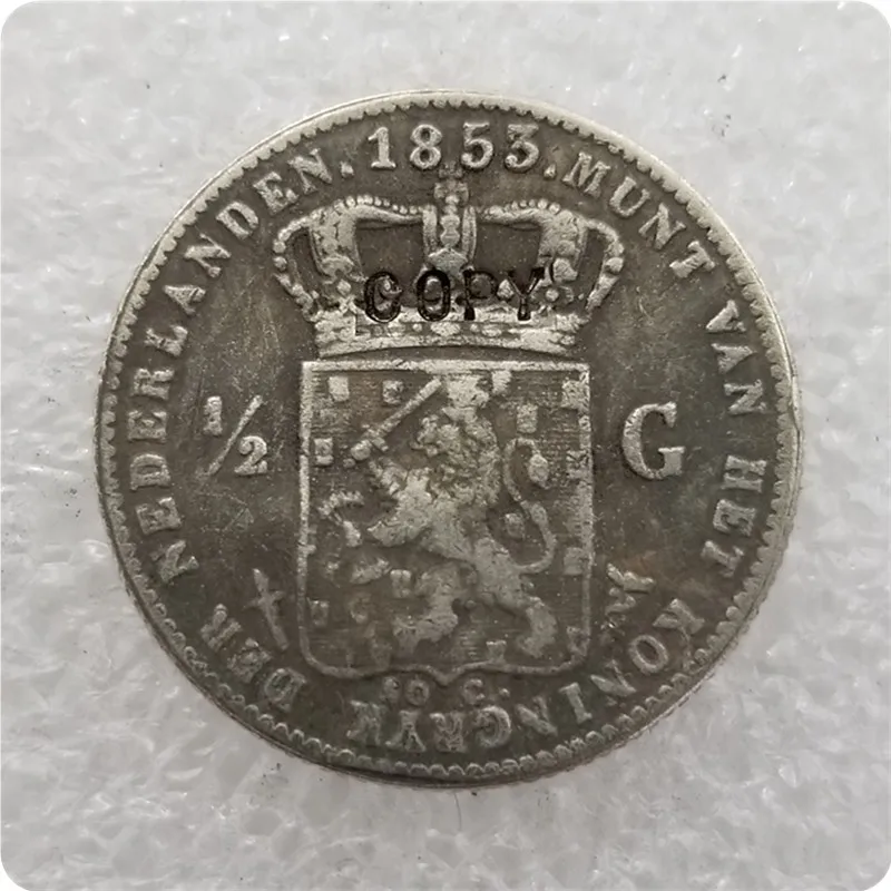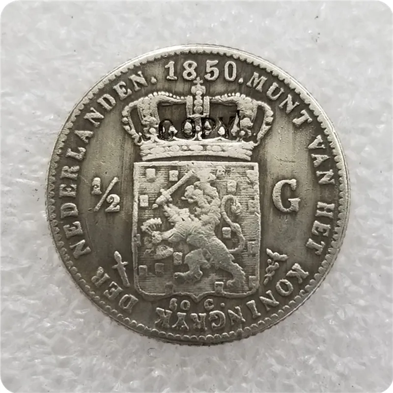 Adding this exquisite 1850,1853 Netherlands 1/2 Gulden coin replica to your collection is an opportunity you won’t want to pass up. This piece not only represents an important aspect of history, but it's also a beautiful testament to craftsmanship. Imagine showcasing it alongside your other prized possessions, evoking admiration from friends and fellow collectors alike. Seize the moment and elevate your collection with this stunning replica today!