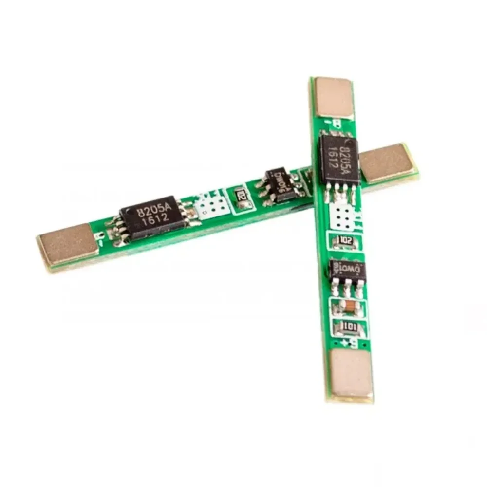 This set of 10 Li-ion battery protection boards is specifically designed for 18650 batteries, featuring high-accuracy voltage detection at 4.25±0.05V overcharge and 2.54±0.1V over-discharge thresholds. Each compact board measures 40mm in length, 4mm in width, and 3mm in thickness, weighing only 10g, and supports a continuous charging and discharging current of 2A with over-current protection at 3A. Incorporating high-voltage components, built-in three-stage over-current detection, and MOS transistors for precise charge and discharge control, these boards ensure safe, reliable operation in battery packs and electronic projects.