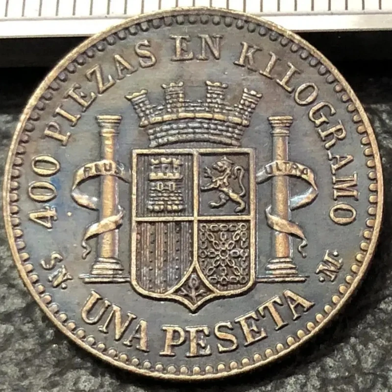 Keys features of the 1869 Spain 1 Peseta Replica Coin