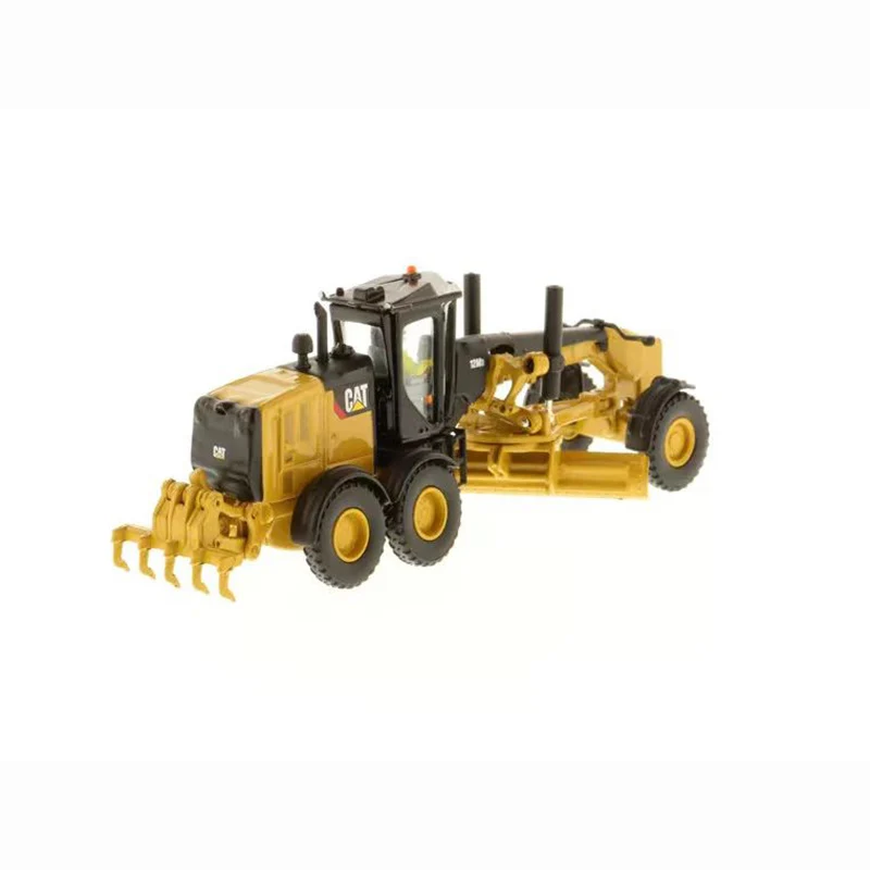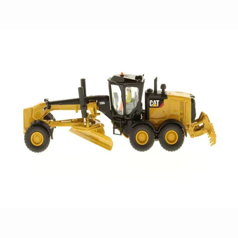 This highly detailed 1:87 scale die-cast model of a Caterpillar 12M3 self-propelled grader is crafted from alloy, plastic, and rubber, showcasing a realistic yellow body with black accents. It features movable parts, including an articulated blade with hydraulic joints, textured rubber tires for added realism, and a transparent cabin with interior details, all capturing the rugged industrial aesthetic. Designed for display, collection, or as a souvenir, this model measures proportionally to the actual vehicle and includes subtle features like an orange beacon on top. It is intended for collectors aged 14 and above and serves as a durable, visually striking decorative piece.
