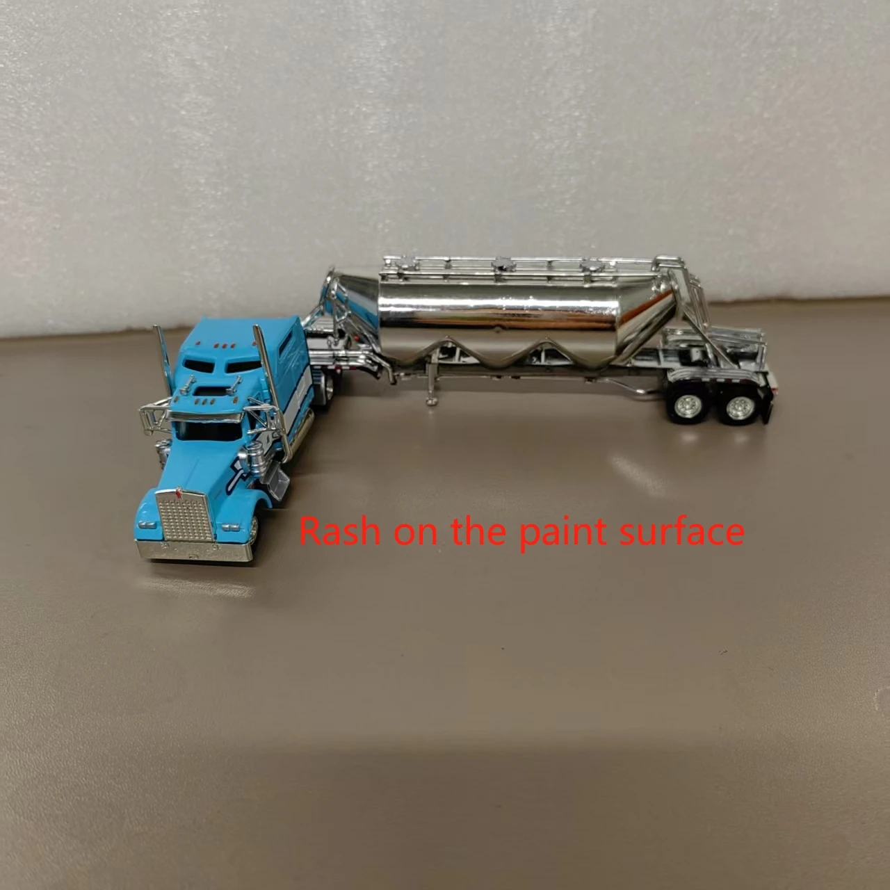 - Features a metallic silver trailer with a rounded, cylindrical shape, highly polished surface, and detailed undercarriage, designed to mimic real transport tankers with minor surface imperfections.