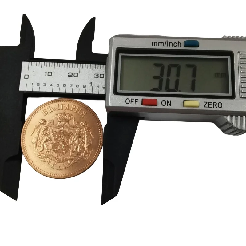 - Made of copper with an aged finish, the coin measures approximately 10 santim, closely resembling genuine late 19th-century Bulgarian currency, ideal for display and collection purposes.