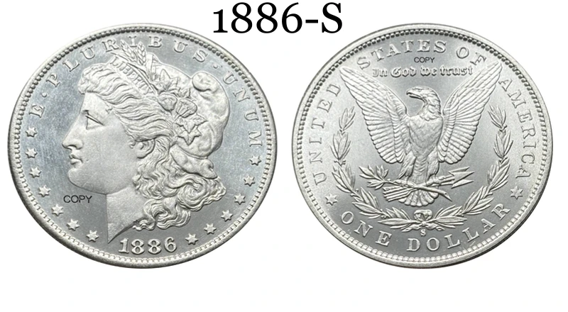 - Intricate engravings and precise lettering, such as “E.PLURIBUS UNUM” and the year “1886,” sharply defined to add authenticity and visual appeal.