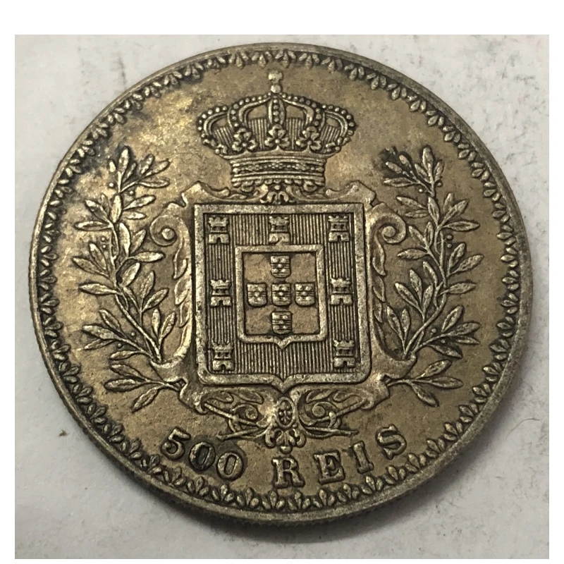 Imagine owning a meticulously crafted replica of the 1891 Portugal 500 Reis coin featuring King Carlos I. This antique-style casting imitation showcases a detailed portrait of King Carlos I facing right, with curly hair, a mustache, and realistic facial features. Surrounding the portrait are inscriptions “CARLOS I REI DE PORTUGAL” and the year “1891,” with a dotted border along the edge adding an ornate touch. Made of metal, this vintage-inspired coin offers textured relief and an authentic antique appearance. It’s perfect for collectors seeking a historical, regal aesthetic and a unique display piece that captures the charm of late 19th-century European coinage.