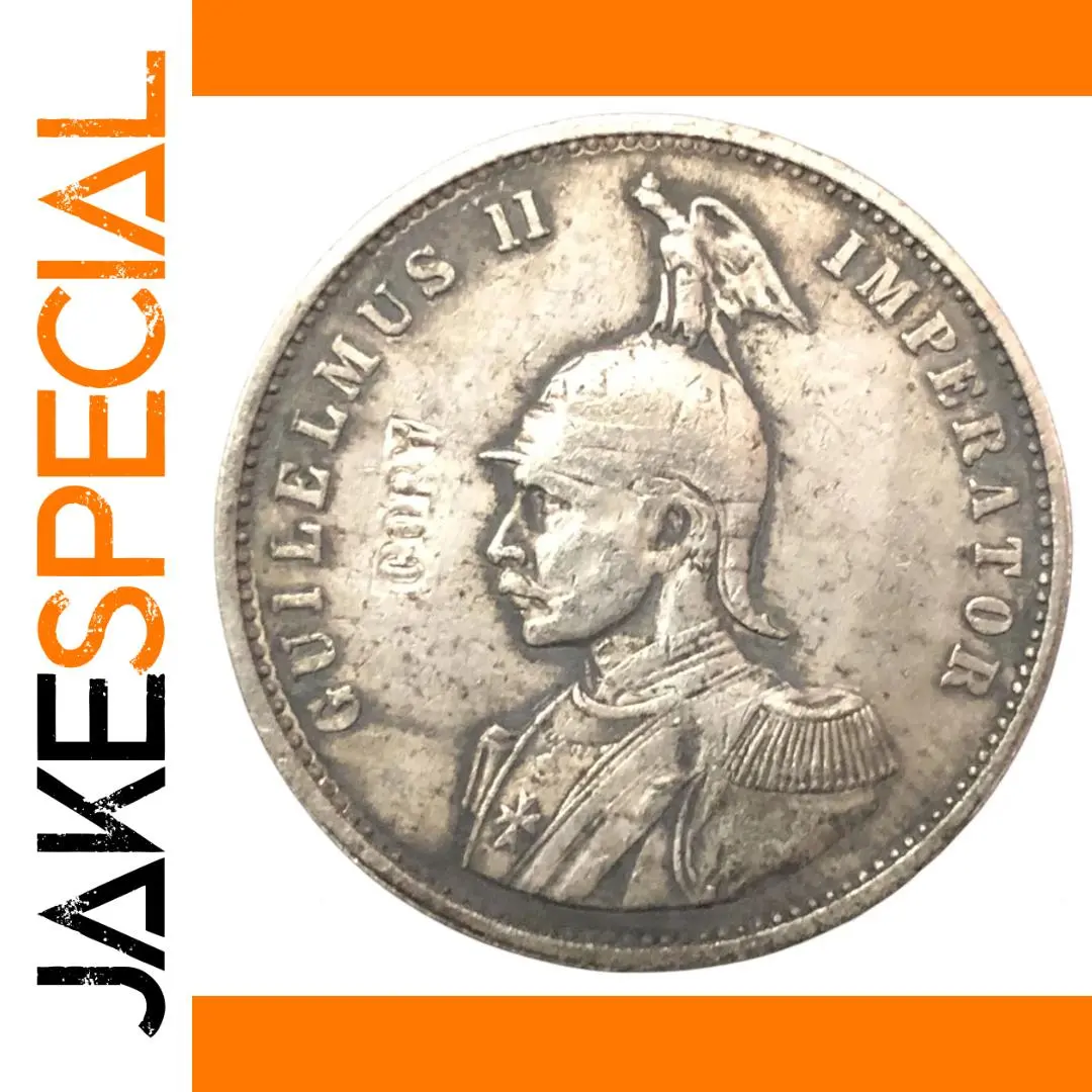 Immerse yourself in history with this meticulously crafted 1892 German East Africa replica. Featuring a detailed embossed profile of a soldier in uniform, it beautifully captures the essence of a bygone era. The soldier wears a distinctive helmet with a crest and has finely rendered facial features expressing calm stoicism. Behind the figure, a small, intricately detailed flame or torch adds symbolic depth. The design is encircled by bold, circular inscriptions reading “DEUTSCH-OST-AFRIKA” and “IMPERATOR WILHELM II,” emphasizing its historical significance. Made from high-quality metal with a textured, antique-quality finish, this piece exudes vintage charm and authenticity. Measuring approximately 0.5 Ruie, it is an ideal collectible, perfect for displaying as a conversation piece or adding a touch of history to your decor.