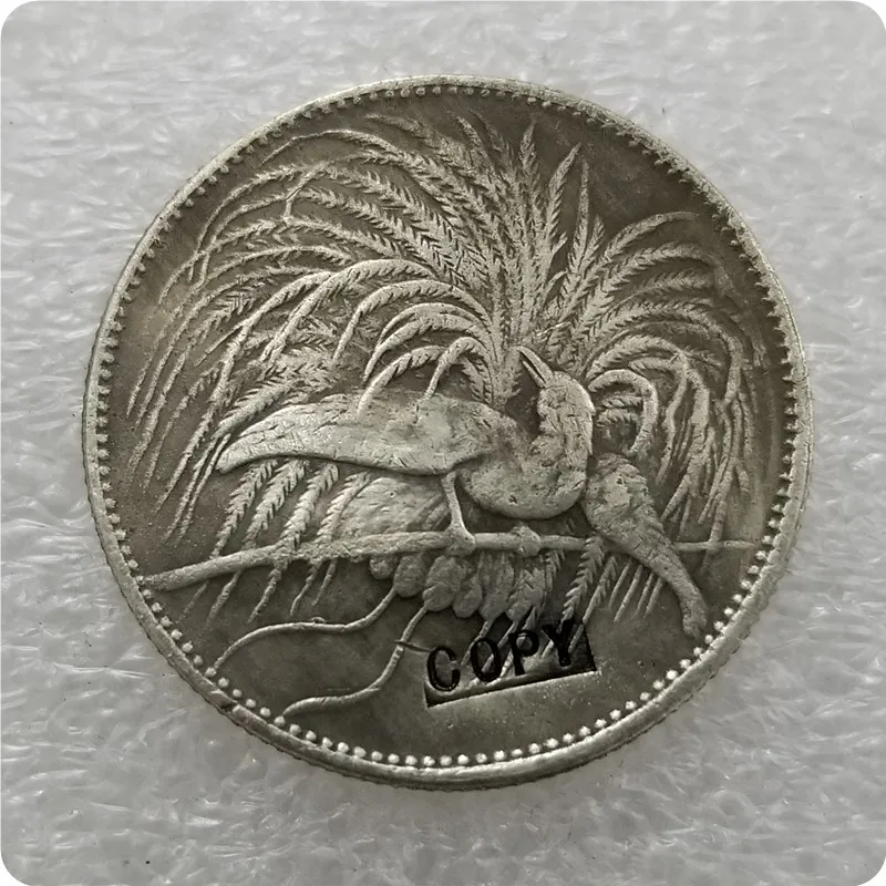 This stunning replica coin, representing the 1894 Neu Guinea Mark, is a perfect addition for avid collectors and history enthusiasts alike. Crafted with exceptional detail, it promises to enhance your collection with its striking design and antique finish. The prominent inscription “2 NEU-GUINEA MARK” and the year “1894,” surrounded by a decorative laurel wreath, create a vintage charm that captures the essence of historical numismatics. Remember, this coin is a replica clearly marked as “COPY,” ensuring that you appreciate its artistry while understanding it is not an original. Adding this piece to your collection provides a unique conversation starter and a true representation of an important era.