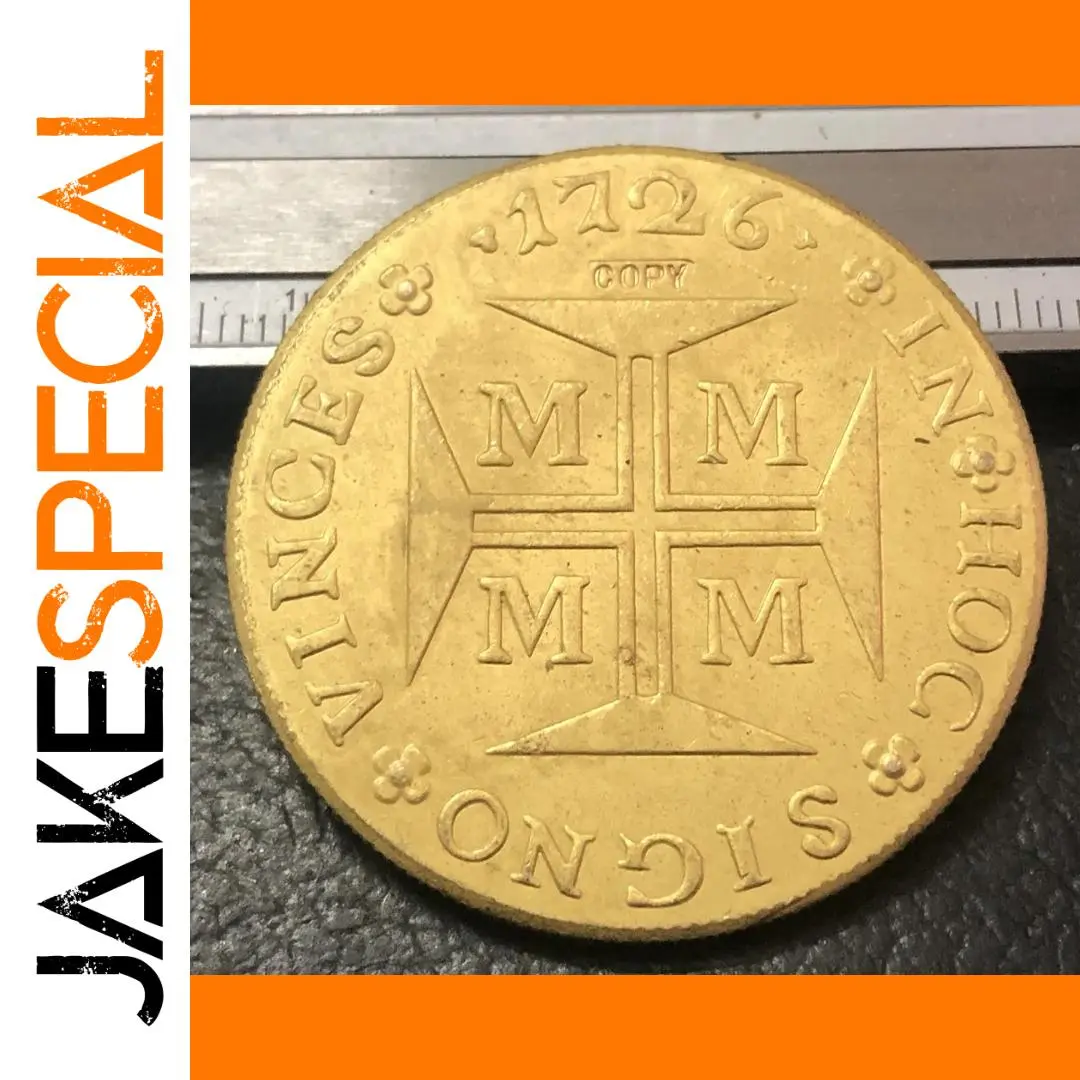Imagine owning a piece of history with this beautifully crafted replica coin inspired by European currency from the 18th century. Featuring a warm, gold-colored metallic finish, it exudes an authentic antique glow that captures the essence of vintage craftsmanship. The slightly aged surface enhances its weathered appearance, giving it a genuine historic aura. The detailed face showcases a central cross with four squares, each marked with an uppercase “M,” surrounded by a finely engraved circular inscription. Tiny floral motifs adorn the border, and a date “1726” is engraved above the cross, emphasizing its historical significance. With sharply defined raised elements, this coin feels textured and solid, perfect for collectors and enthusiasts appreciating vintage European aesthetics.