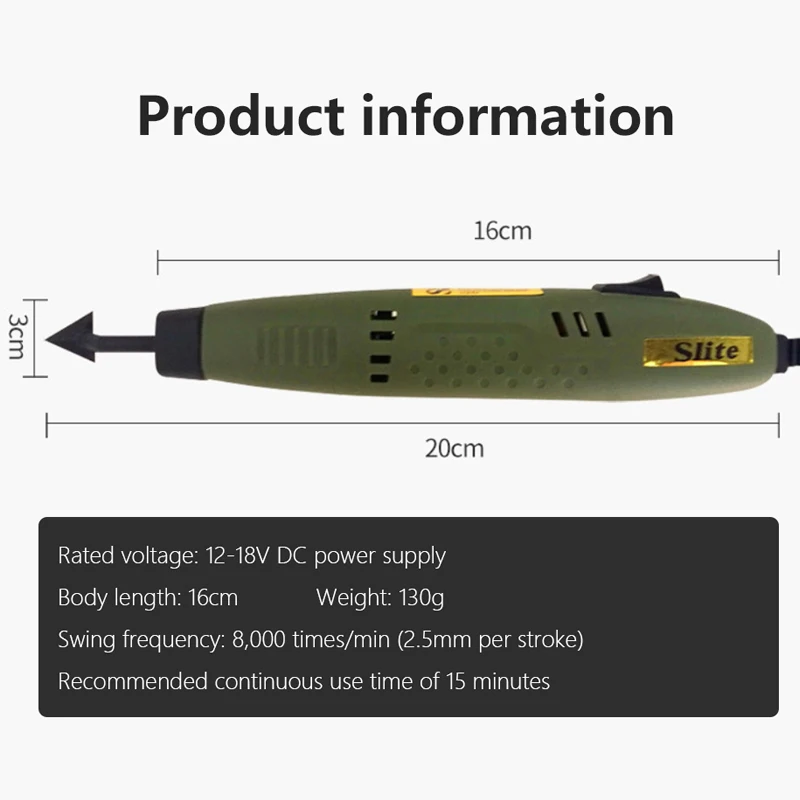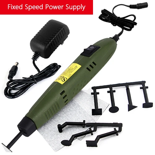 The 18W Mini Sander Pen Type Polisher is an essential tool for DIY model moulding and electric grinding. With a lightweight construction of only 0.2 kg and a sturdy reinforced ABS plastic shell, it features a grinding head diameter of 3 mm, ideal for precision work. The sander operates at a no-load speed of 12,000 RPM and requires a 12V power supply, while the input voltage is 220V (US-type plug with EU adapter included). Designed for combination disc and belt sanding, this tool is perfect for detail-oriented projects, though continuous operation should be limited to 15 minutes for optimal performance.