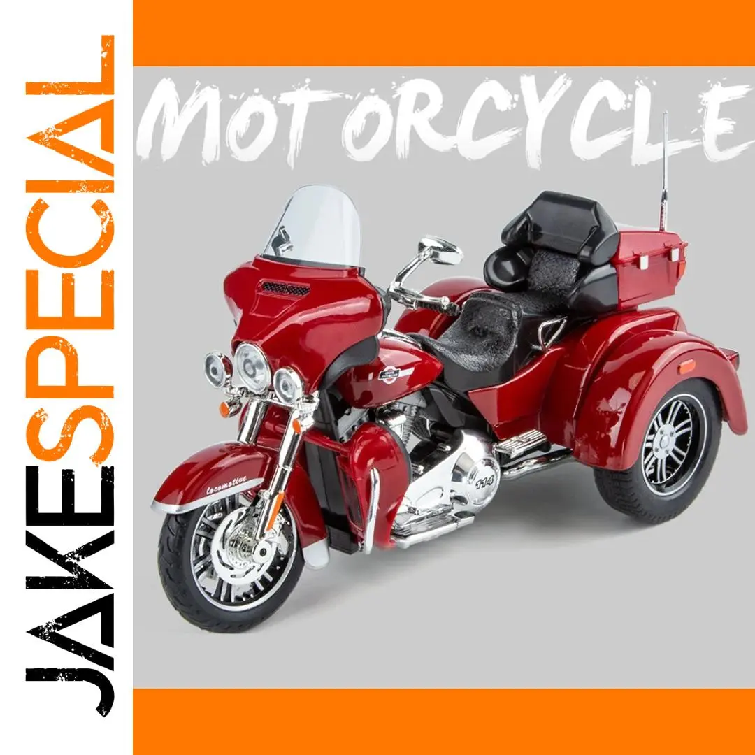 Experience the thrill of owning this stunning 1:9 diecast CVO Tri Glide motorcycle model. Finished in a vibrant red glossy paint, this meticulously crafted model showcases intricate details, including chrome accents on the headlights and a plush black contoured seat. Perfectly designed for collectors, it features a large front fairing and windshield that lend a sleek appearance. Its impressive structure, comprising durable alloy and plastic, makes it a standout piece for any display. With its realistic features, like the multi-spoke wheels and functional storage trunk, you'll be captivated each time you glance at this remarkable model.