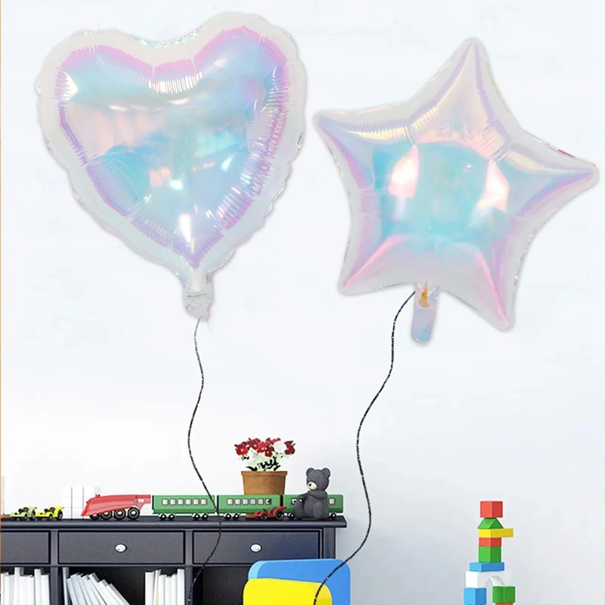 - This 19-inch balloon combines iridescent transparency with a glossy finish, reflecting rainbow colors, perfect for creating an eye-catching centerpiece at any celebration or event.