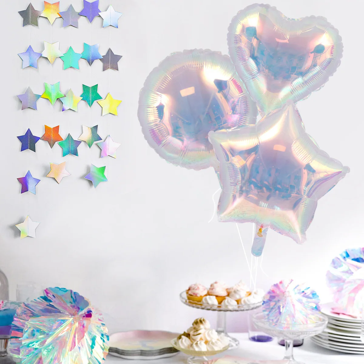 Imagine transforming your special event with this beautiful 19-inch foil balloon, designed to capture attention and create lasting memories. Its transparent, iridescent finish reflects light in a mesmerizing rainbow glow, adding elegance and vibrancy. Featuring a unique 3D laser-effect and explosion star or cone starburst pattern, this balloon elevates birthdays, weddings, and festive gatherings. Crafted from high-quality aluminium foil, it ensures durability and a shiny, sleek surface. Whether used as a centerpiece or part of a larger decoration scheme, this balloon will make your event truly unforgettable, complementing any theme with its radiant, luminous style. You are just moments away from elevating your celebration effortlessly.