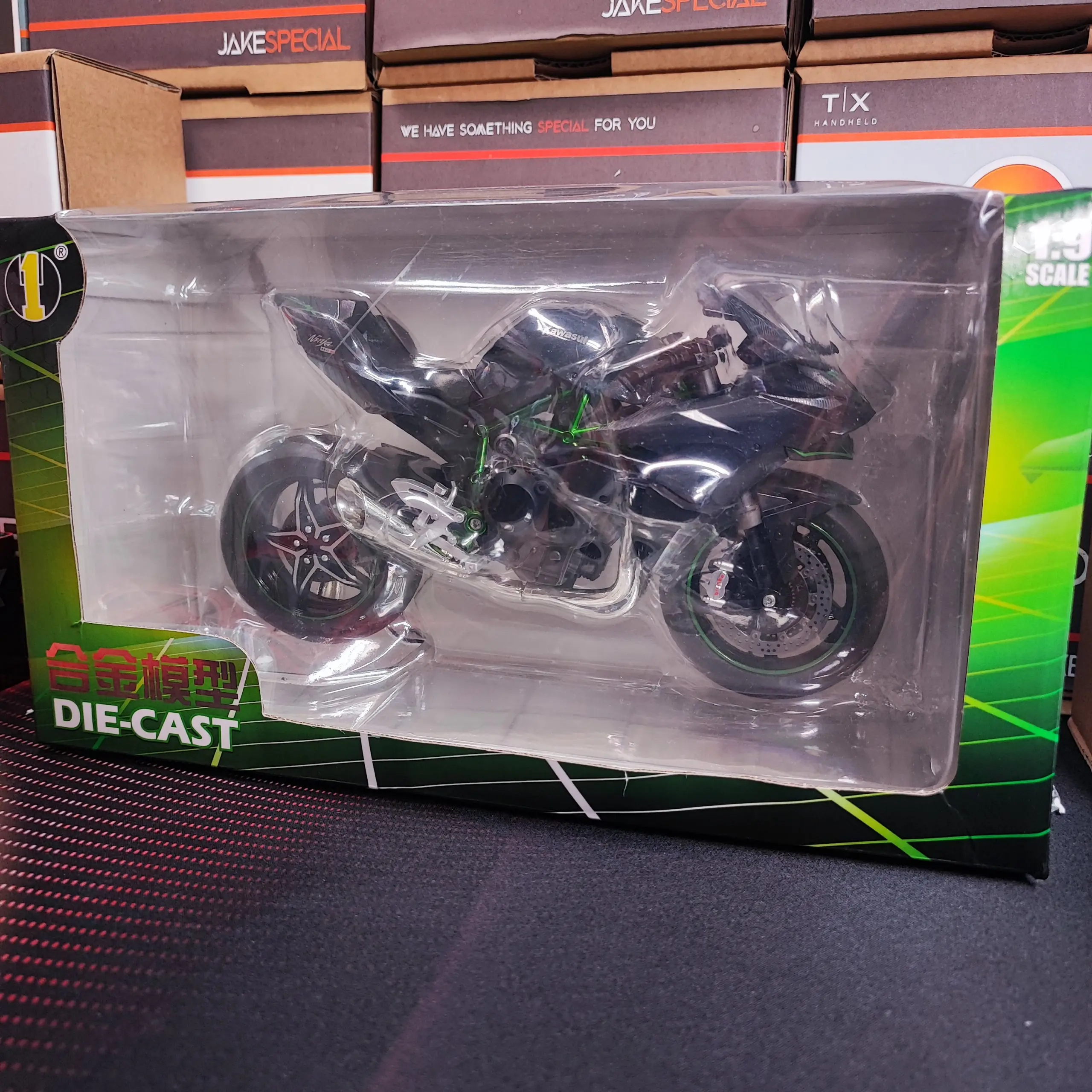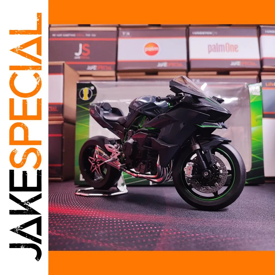 Elevate your collection with this meticulously crafted 1:9 scale Kawasaki H2R Ninja V4S Motorcycle model. Featuring a sleek black finish with striking green accents, this collectible captures the essence of the real motorcycle with precise detailing. Made from high-quality alloy and plastic, the model showcases an aerodynamic design with realistic wheels and disc brakes. Its sturdy yet lightweight construction allows for easy display or imaginative play. Imagine showcasing this stunning replica in your home—its intricate design and vibrant colors will surely catch the eye of any motorcycle enthusiast. Add this captivating piece to your collection today and enjoy the admiration it brings.