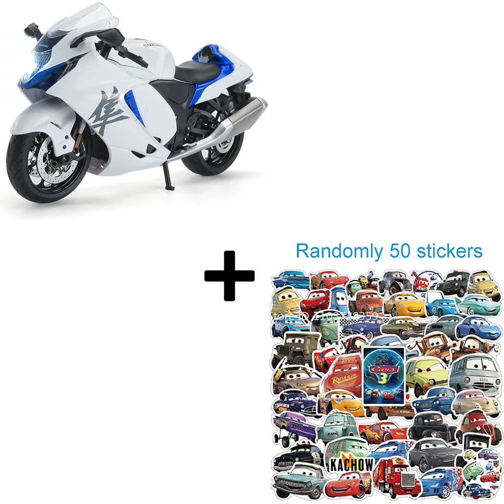 Experience the thrill of high-performance with this 1:9 scale Suzuki Hayabusa motorcycle model, expertly crafted from durable zinc alloy and ABS plastic. This detailed replica measures approximately 24.5 cm in length, 10 cm in width, and 13.5 cm in height, available in sleek black or white options, including sticker variants. Features include shock absorption wheels, front wheel steering, sound effects, a retractable tripod, and a rear light activated by the rear wheel, all enhancing realism. Batteries are included, and the model’s sturdy yet lightweight design makes it perfect for display or collection, showcasing exquisite craftsmanship and attention to detail for adult enthusiasts.