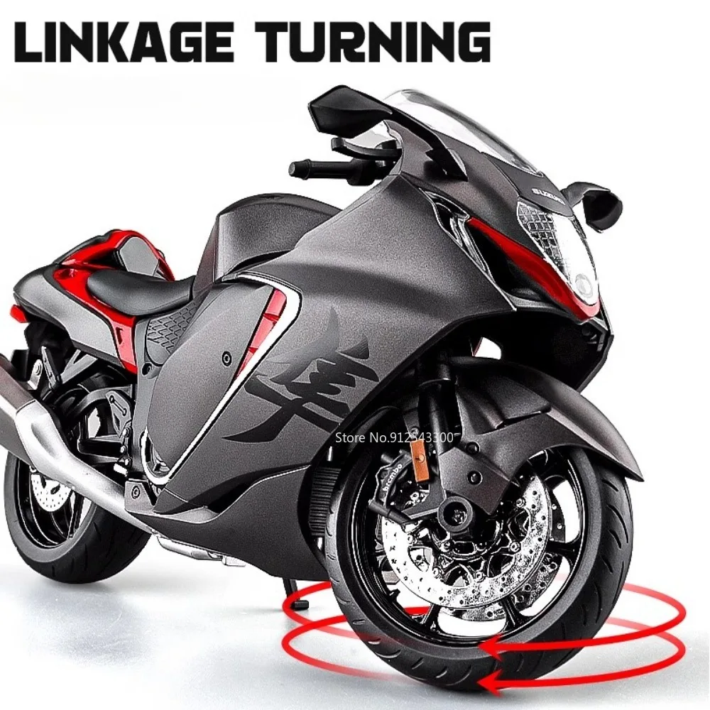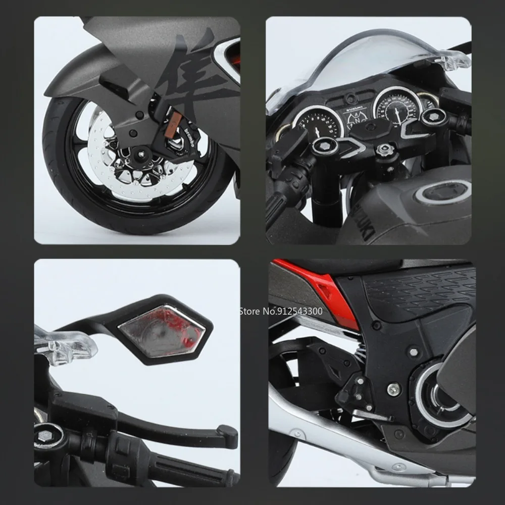 Envision yourself proudly displaying this stunning Suzuki Hayabusa model, showcasing its meticulous craftsmanship and sporty design. Whether you're a motorcycle enthusiast or a dedicated model collector, this piece adds a sophisticated touch to any space. Its realistic features and durable build make it an ideal gift or a personal showpiece. With its functional steering, suspension, and lighting, you can truly appreciate the engineering behind the original bike. Don't miss the chance to bring this impressive replica into your collection and enjoy the admiration it will surely attract.