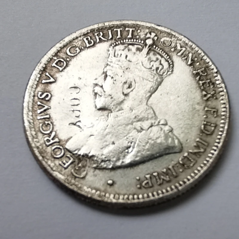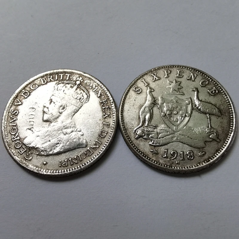 This 1918 replica coin features the portrait of George V and showcases an ornate antique European design. Crafted from metal using casting techniques, it depicts the Australian coat of arms supported by finely textured kangaroo and emu figures, encircled by a beaded dot border. The coin’s surface has a vintage, aged appearance with detailed insignia and a muted metallic tone, evoking the charm of early 20th-century craftsmanship. With its intricate engravings and historical theme of people, this collectible copy offers a rich aesthetic appeal, making it an ideal addition for enthusiasts of antique-style replicas and historical memorabilia.