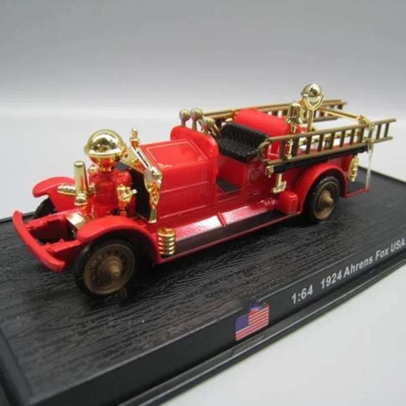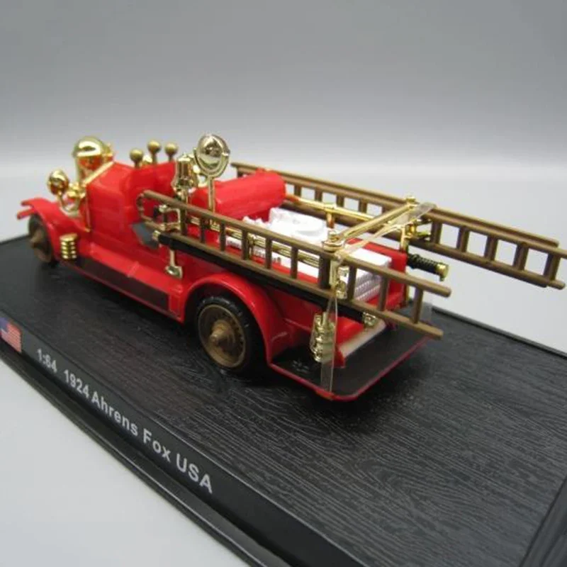 Discover the exquisite Diecast Alloy 1/64 Scale American 1924 Ahrens Fox USA Fire Truck Model, measuring approximately 13 cm in length, 3 cm in width, and 4 cm in height. Crafted from durable alloy and ABS materials, this vibrant red model features shiny gold accents, including knobs, bells, and decorative piping, enhancing its authentic appeal. The open-cab design showcases a detailed interior with a black driver’s seat and a steering wheel. With realistic black tires and two wooden ladders in gold, this model is perfect for display and collecting, making it an exceptional decorative piece for any enthusiast.