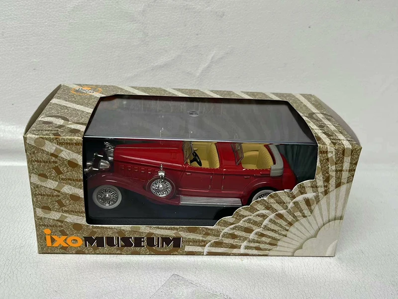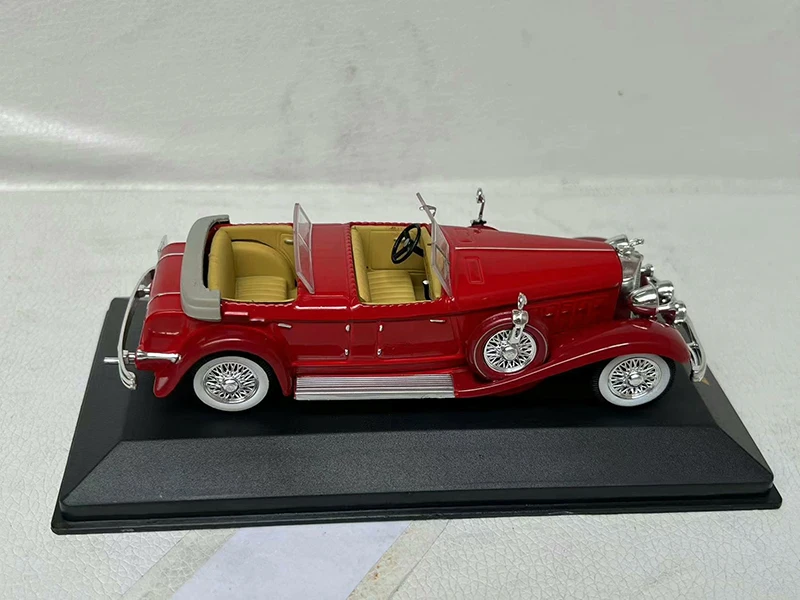 - The vibrant red body features a glossy finish with detailed embossing on the hood and sides, highlighting the classic 1933 Chrysler Imperial Le Baron Phaeton’s distinctive design.