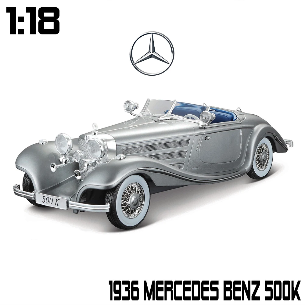 - 1:18 scale model captures every detail of the iconic Mercedes Benz 500K design.