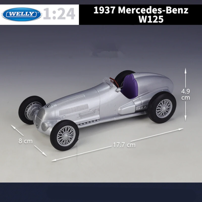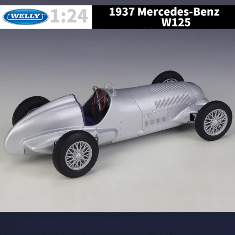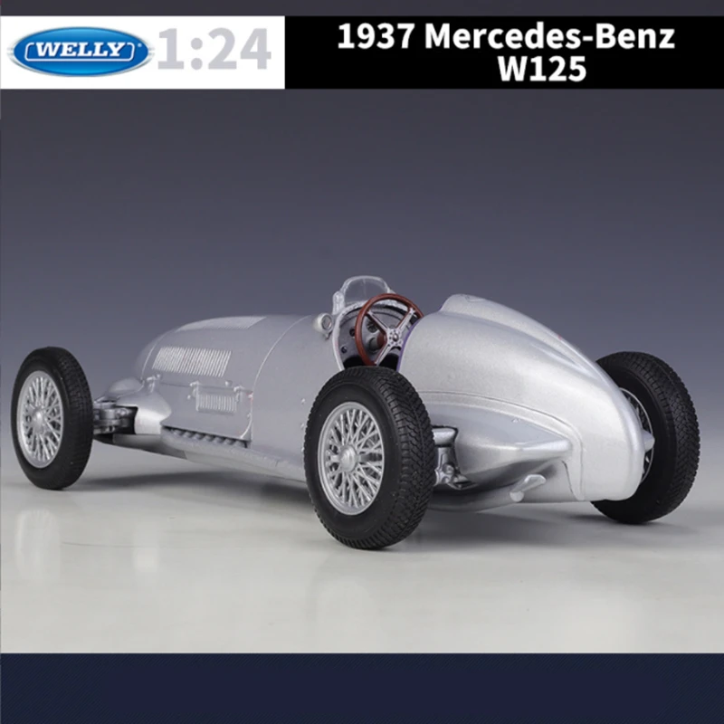 - This highly detailed 1:24 scale model uses alloy and plastic to replicate the vintage 1937 Mercedes Benz W125 with precision and durability.