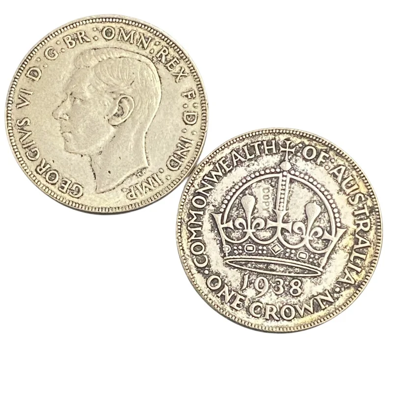 - Precise model based on the 1938 Australian 1 Crown coin, capturing historical details with fine relief work and vintage styling for a collectible look.