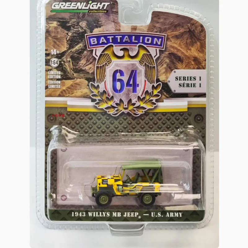 - Accurate features including a vertical slatted grille, small round headlights, rugged tires with treads, and a simple green fabric seat cover for added realism.