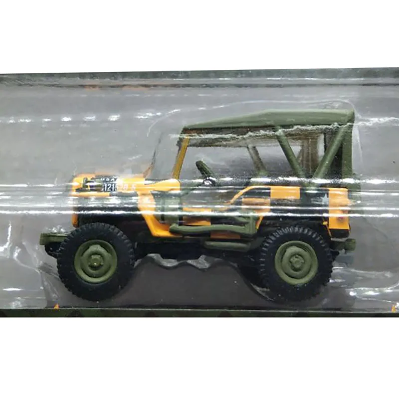 - Bright orange body with authentic black grille and detailed components, capturing the vintage military off-road vehicle's iconic appearance.