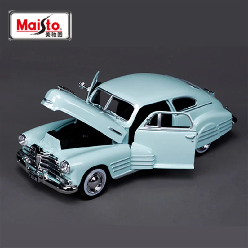 Experience the nostalgia of the 1948 Chevrolet Fleetline Aerosedan with this detailed 1:24 scale diecast alloy model, available in classic red or soft pastel blue. Crafted from alloy and plastic, it features smooth, rounded vintage body lines, chrome accents on the grille, bumpers, and window frames, and period-specific white sidewall tires with polished hubcaps. Designed for adult collectors and enthusiasts, this non-electric model offers an authentic retro aesthetic with exceptional craftsmanship, capturing the iconic curves and chrome details that define this classic car. Perfect for display or as a thoughtful gift, it combines durability with timeless style.
