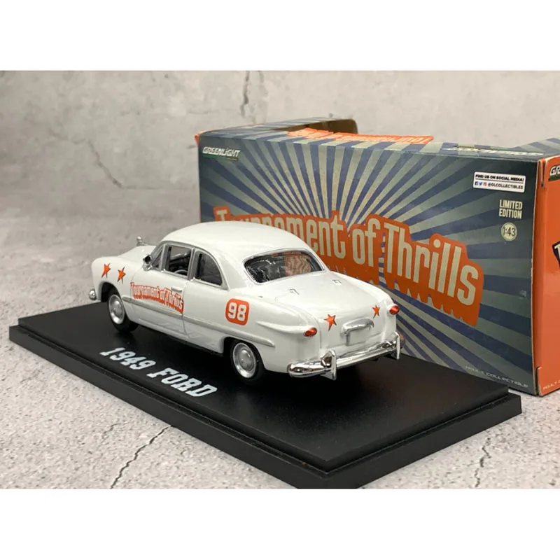The stunning diecast model of the 1949 Ford Police car, brought to you by GreenLight, is a masterpiece for every collector. With its striking white body and bold orange graphics, including “Tournament of Thrills” and decorative stars, this model perfectly encapsulates vintage police vehicle charm. Made with durable metal alloy, it features intricate details like a chrome grille, clear headlights, and a meticulously crafted interior view through the clear windows. Measuring 1:43 in scale, it’s ideal for display. Please note, this model has defects including cracks in the roof and no retail packaging, adding to its unique character for discerning enthusiasts.