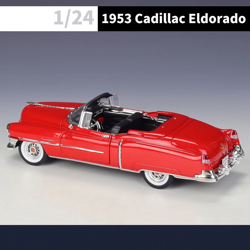 - This 1:24 scale alloy diecast model showcases the genuine vintage Cadillac Eldorado’s design with ornate chrome details and authentic styling elements from 1953.