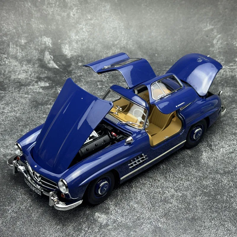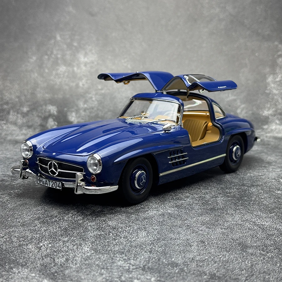 Experience the timeless elegance of this highly detailed diecast model of the 1954 Mercedes-Benz 300SL Gullwing by Norev. With its vibrant glossy blue finish, this 1:18 scale replica captures the sleek lines and iconic design of the classic Mercedes. The gullwing doors seamlessly fold upwards, showcasing the car’s distinctive silhouette, while chrome accents highlight the front grille, bumpers, and side mirrors for an authentic vintage look. The meticulous detailing extends to the realistic wheels, precise headlamps, side vents, and clear windshield that represents real glass. Whether displayed on a shelf or part of your car collection, this model invites you to visualize owning a piece of automotive history, bringing sophistication and admiration to any space.