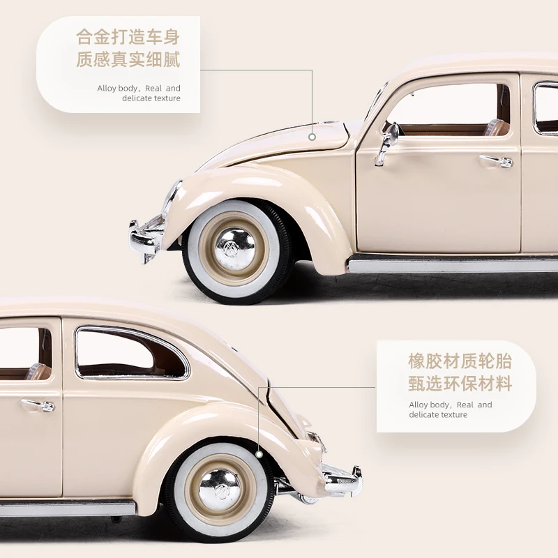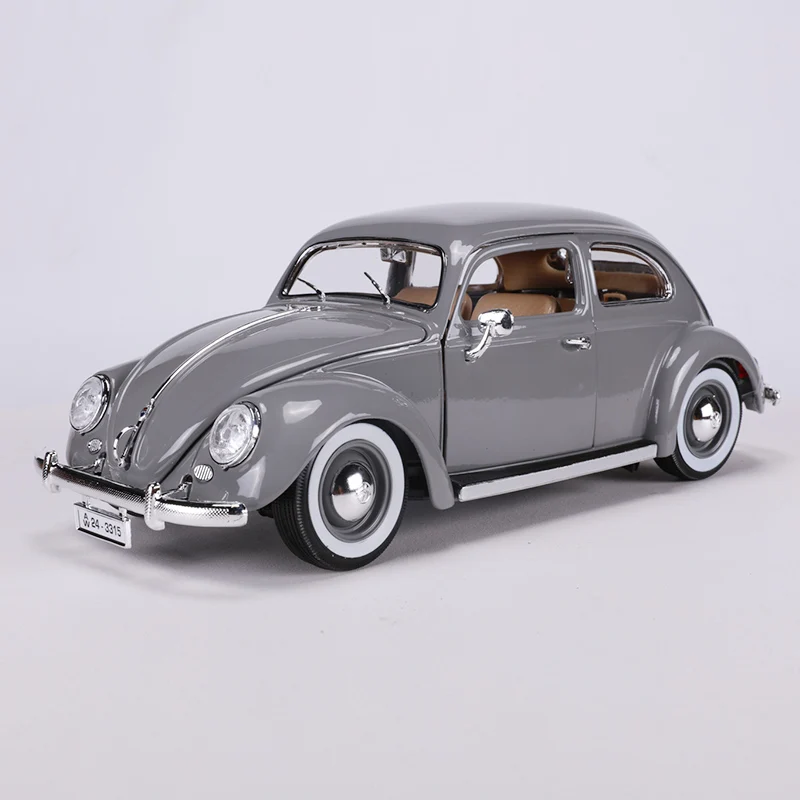 Immerse yourself in vintage charm with this 1:18 scale diecast model of a 1955 Volkswagen Beetle, crafted from durable metal. Featuring a glossy finish in options of blue, gray, or yellow, this collectible captures the iconic rounded contours, chrome accents, and authentic details such as clear lens headlights, whitewall tires, hubcaps, and a central chrome strip on the hood. Perfect for adult collectors, it reflects exquisite craftsmanship with intricate molding and realistic proportions, making it an ideal display piece. The non-electric, battery-free design ensures timeless appeal, allowing you to proudly showcase a classic car that embodies nostalgic elegance and enduring style.
