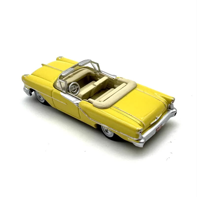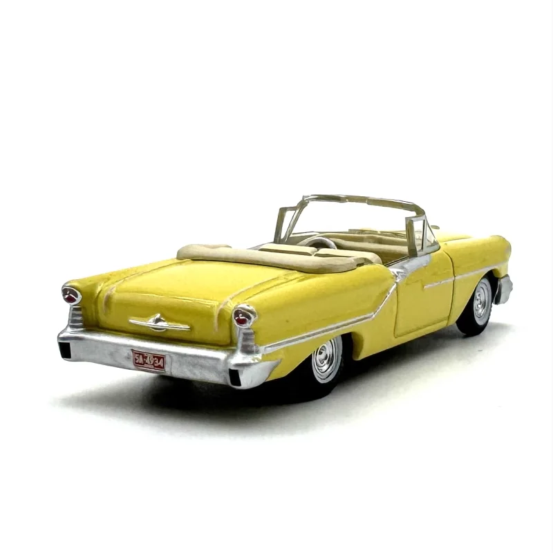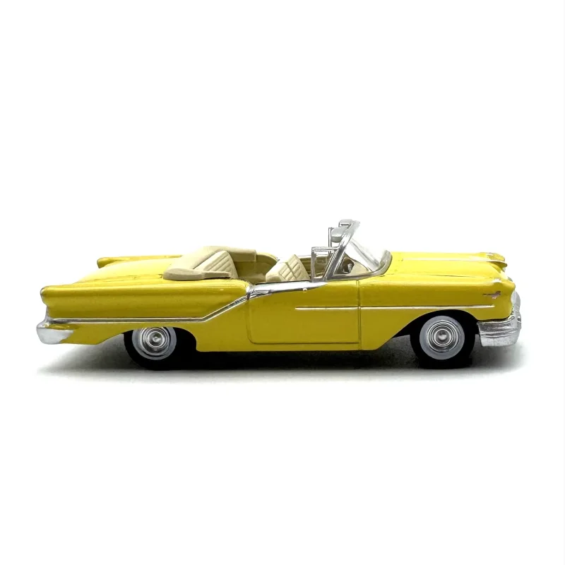 Bring vintage charm to your collection with this highly detailed 1:87 scale diecast model of a 1957 convertible car, crafted from alloy and plastic. Finished in a glossy, vibrant yellow with chrome accents on the grille, bumpers, and hubcaps, it captures the classic 1950s automotive style perfectly. The clear windows reveal a molded interior with steering and seating, while the streamlined silhouette features distinctive tail fins and elegant curves. Intended as a static display, decoration, or gift, this model measures approximately 1/87 of the original size and is suitable for collectors aged 18 and above.