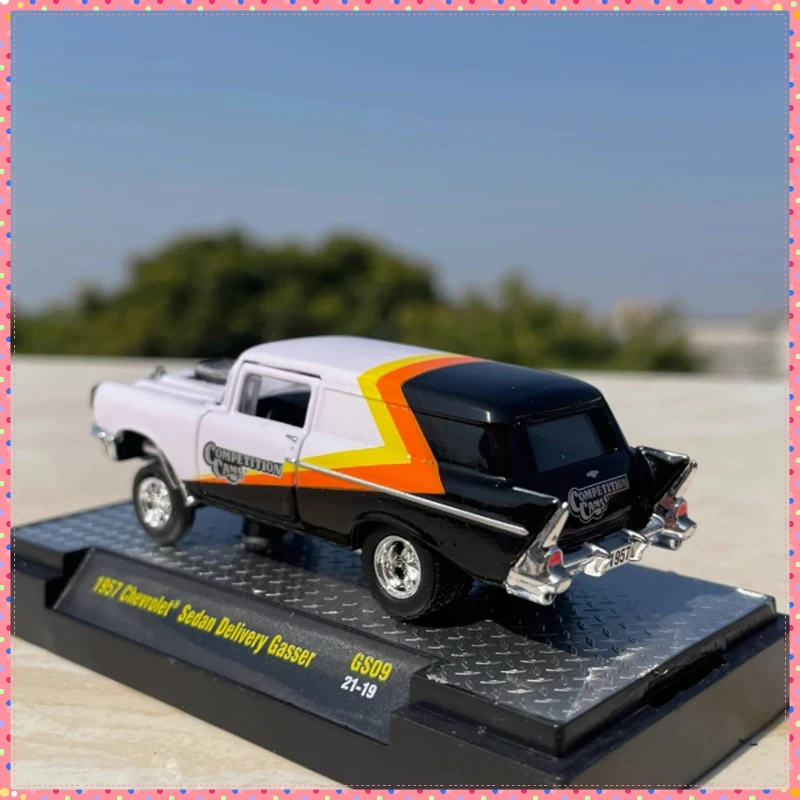 Immerse yourself in the charm of the classic 1957 Sedan Delivery Gasser with this meticulously crafted 1:64 scale diecast model. Featuring a stunning silver body adorned with vibrant yellow, red, and orange stripes, this model embodies retro aesthetics. The eye-catching gold alloy wheels and bold “COMPETITION” markings provide a striking finish. Perfectly designed for collectors and enthusiasts alike, it captures every detail, from the raised engine block to the textured black base. Display this piece in your home or share it as a unique gift that celebrates automotive history.