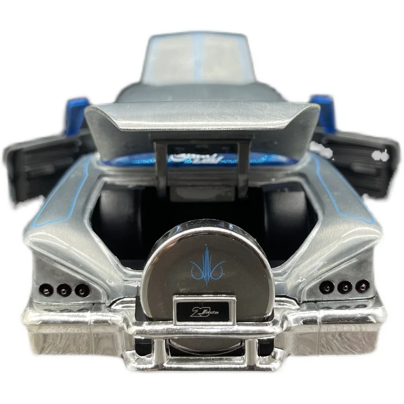 - Intricate detailing including blue pinstriping on the shiny silver body.