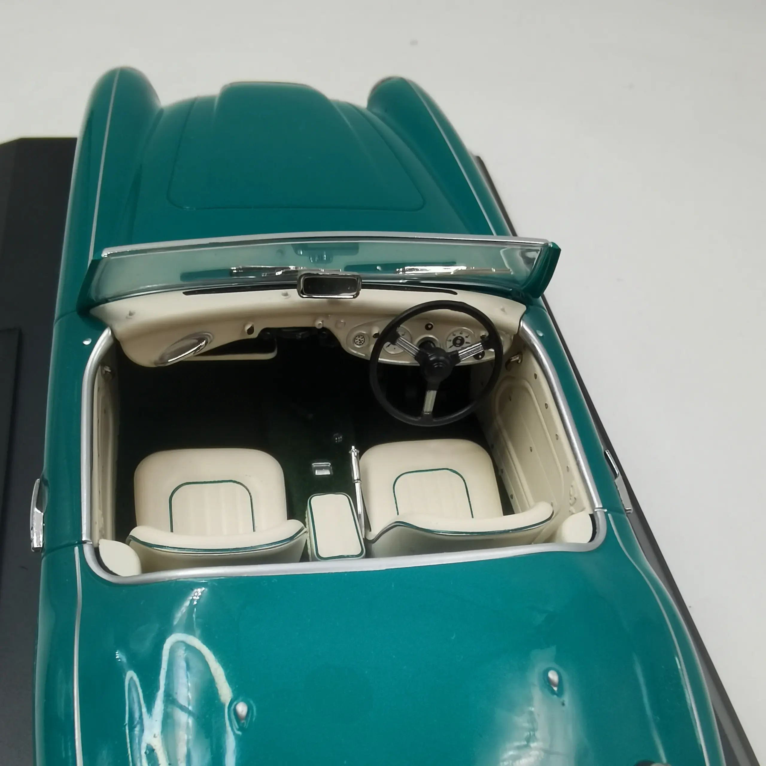 Imagine adding this stunning 1/18 scale replica of the 1959 Austin Healey 3000 to your collection—a tribute to classic automotive design. The vibrant teal exterior, complete with smooth, glossy paint, beautifully captures the spirit of this vintage car. Its intricately designed chrome grille and prominent round headlights enhance its authentic look, making it a striking centerpiece for your office or living room. The model's interior showcases cream-colored seating for added realism, while the solid alloy body ensures durability. This model not only serves as an eye-catching decoration but also makes for a thoughtful gift for any car enthusiast.