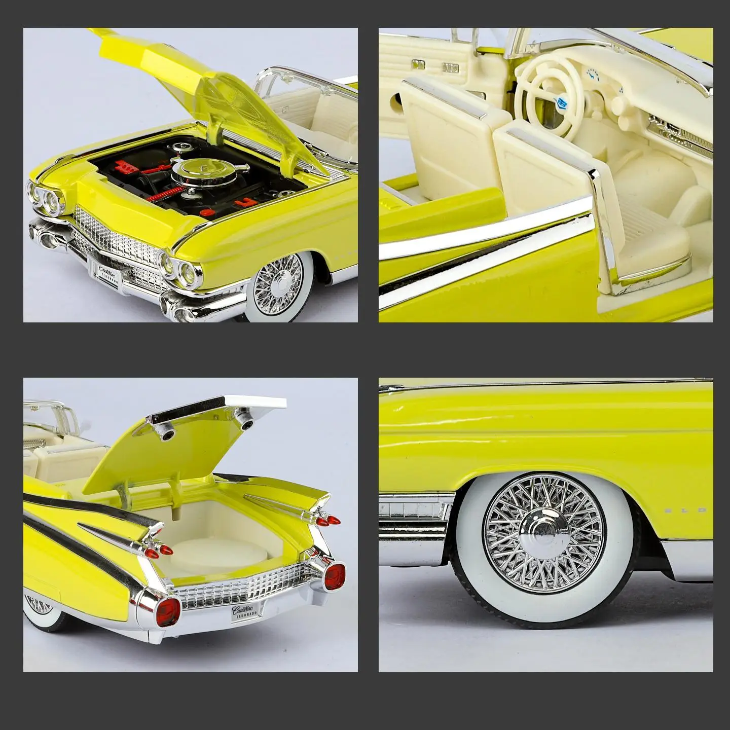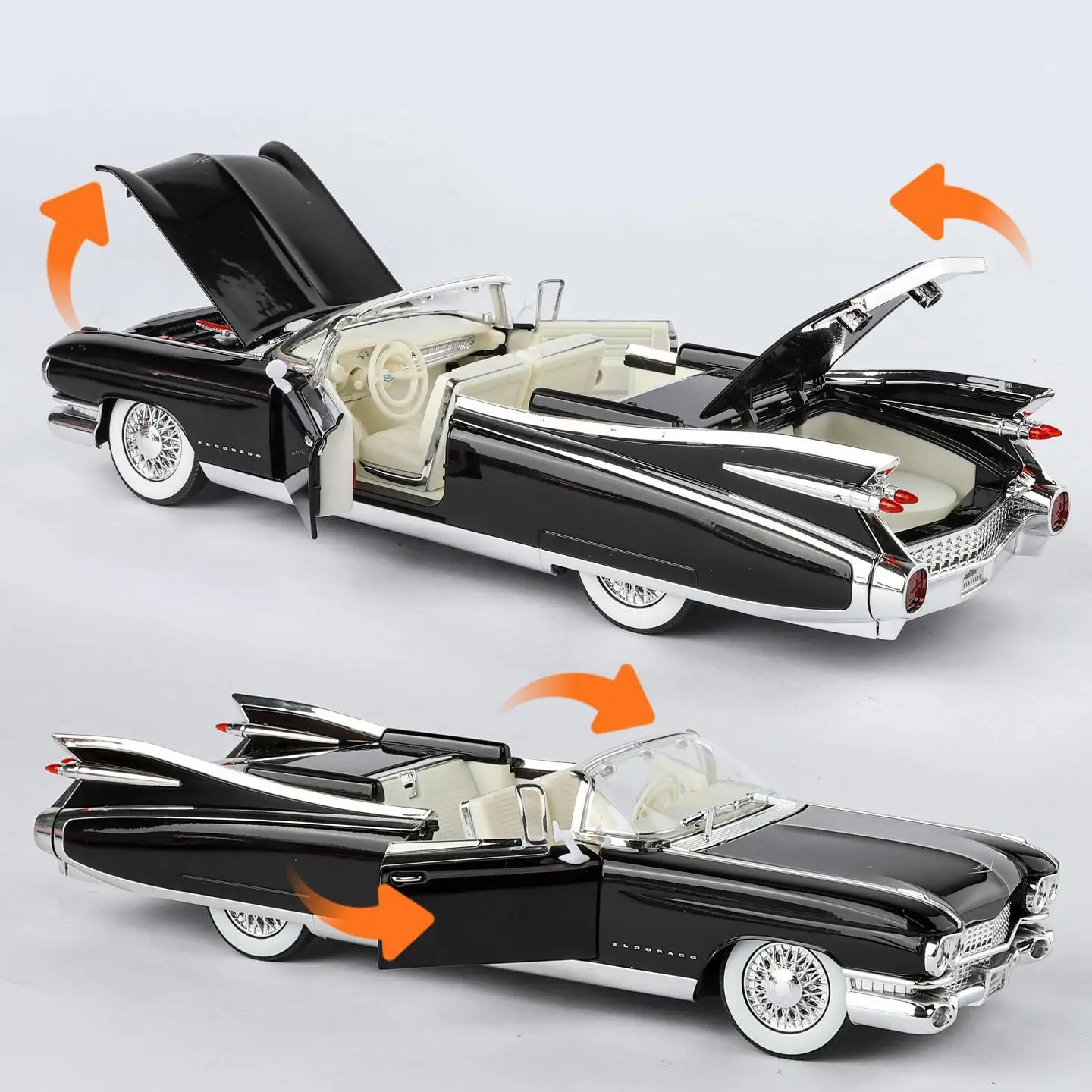 - Equipped with realistic white-wall tires and intricate wire-style chrome hubcaps, reflecting the style and elegance of 1959 luxury cars accurately.