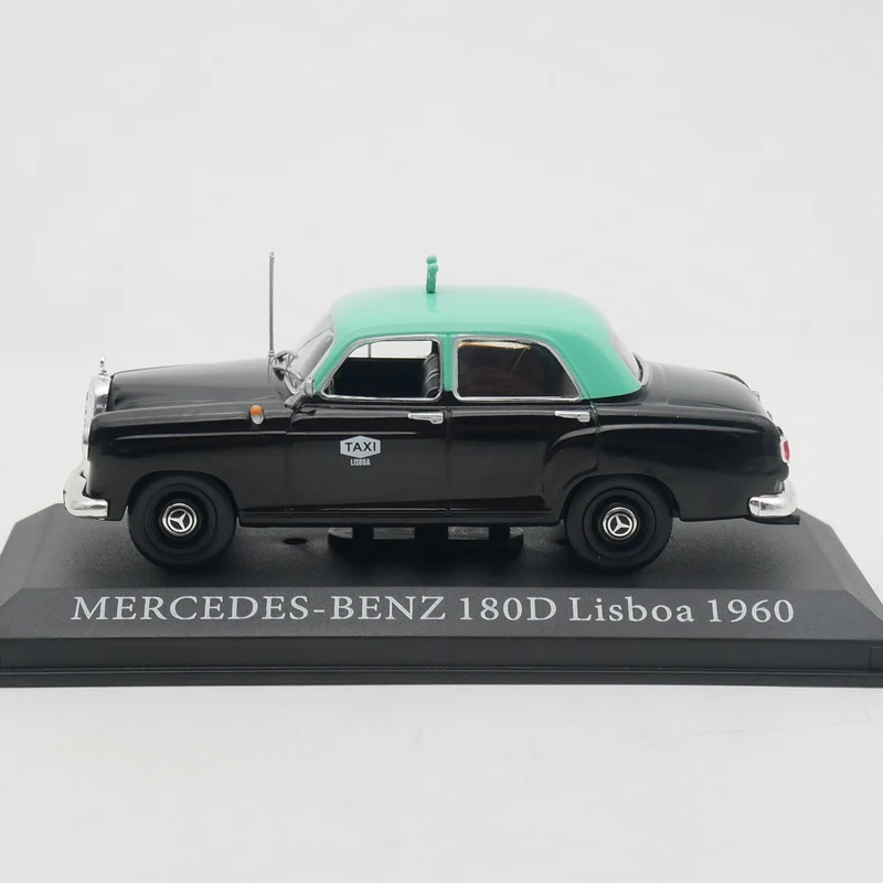 Experience nostalgia and elegance with this beautifully crafted 1:43 scale diecast model of the classic 1960 Mercedes-Benz 180D. Made from alloy and ABS plastic, this miniature captures every detail of the vintage sedan, including its rounded edges, curved roofline, and authentic two-tone paint job featuring a sleek black body contrasted by a pastel turquoise roof. The metallic silver grille, chrome front bumper, round headlights, and small decals add a realistic touch, making it a perfect display piece for enthusiasts and collectors. Its compact size ensures it's ideal for display in a collection or workspace, where it exudes classic charm and vintage automotive style. Visualize owning this collectible that reflects timeless design and craftsmanship.