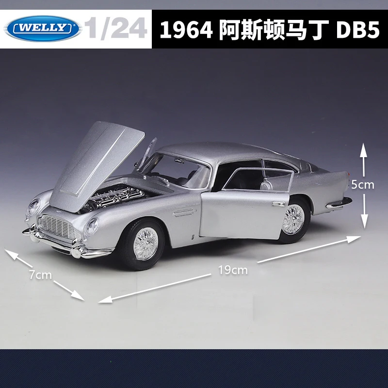 Experience the timeless elegance of the 1964 Aston Martin DB5 with this 1:24 scale diecast model by WELLY. Made from alloy and plastic, this stunning miniature features a sleek silver finish, intricate details such as the prominent front grille, oval headlamps, subtle side vents, and intricately designed wheels with silver hubcaps. Its smooth, rounded body and classic coupe silhouette exude vintage sophistication, perfectly capturing the essence of the original vehicle. Suitable for collectors and enthusiasts aged 4 and up, this finely crafted model has no electrical components and is certified with a 3C certification, making it an attractive display piece for vintage car lovers.