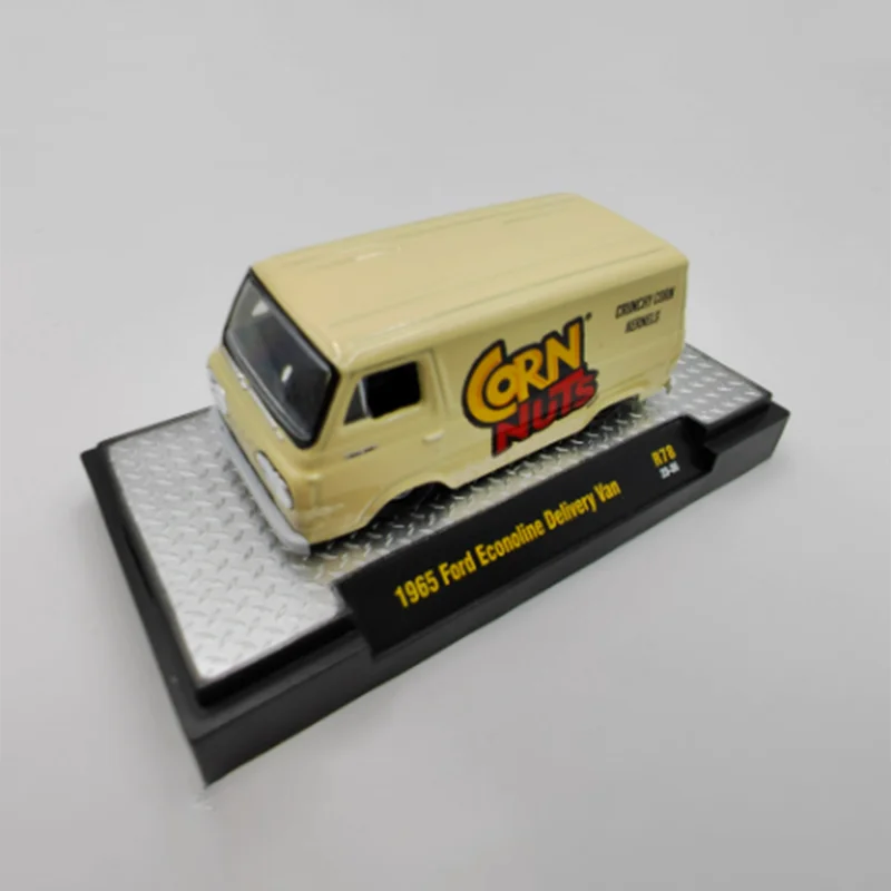 Step into nostalgia with this meticulously crafted diecast model of the 1965 Ford Econoline Delivery Van. Measuring approximately 7 centimeters, this 1:64 scale replica captures the vintage charm with its smooth, rounded edges and compact rectangular shape typical of the era's delivery vans. The primary color is a soft, elegant beige, complemented by a vibrant “CORN NUTS” decal featuring yellow and red backgrounds that add a splash of color to the clean lines. Constructed from durable alloy, the model boasts a glossy finish, precise detailing on wheels with silver rims, and a realistic overall appearance. It’s an ideal addition for collectors, enthusiasts, or anyone looking to enhance their display with a touch of retro style.
