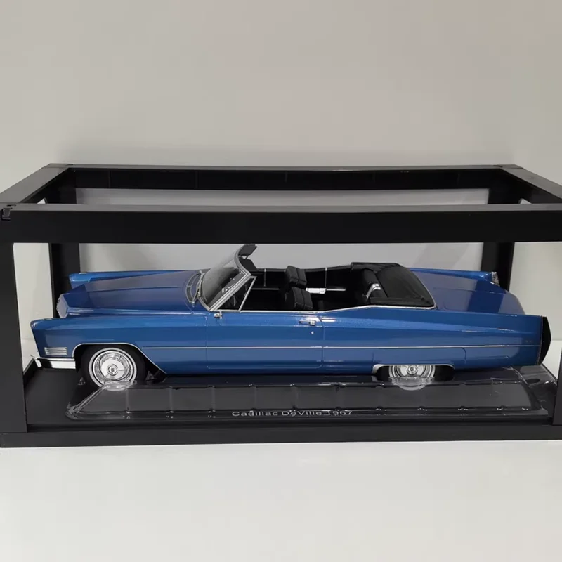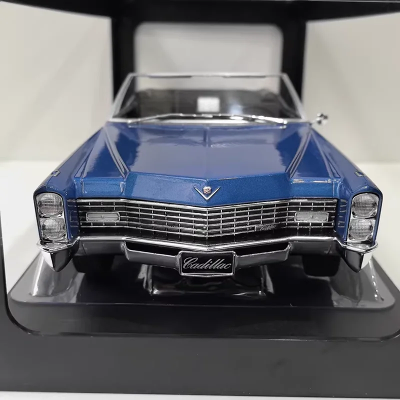Experience the timeless elegance of the 1967 Cadillac DeVille Convertible with this detailed collectible model. Crafted from alloy, plastic, and rubber, this 1:18 scale miniature captures the luxury and sleek profile of the vintage vehicle. The vibrant blue exterior with a glossy finish highlights the streamlined design, long hood, and subtle contours characteristic of 1960s luxury cars. Open-top and black interior details bring authenticity to this static display piece while chrome accents on the grille, bumpers, and headlights add a touch of sophistication. Despite being a collectible, some minor imperfections due to aging and stock condition are visible, giving it authentic character. This model is perfect for display, gifting, or hobby use, evoking nostalgia for classic car enthusiasts.
