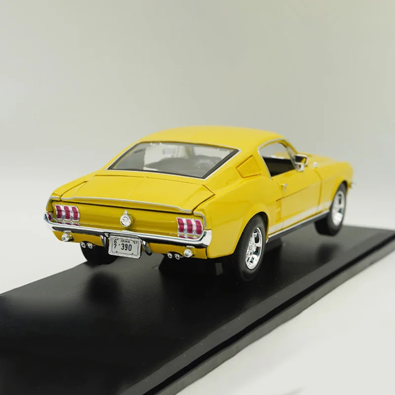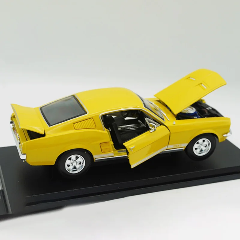- Finished in a vibrant, glossy bright yellow color, this model highlights the sleek, well-defined body lines and smooth contours of the classic Mustang design, offering an eye-catching visual appeal.