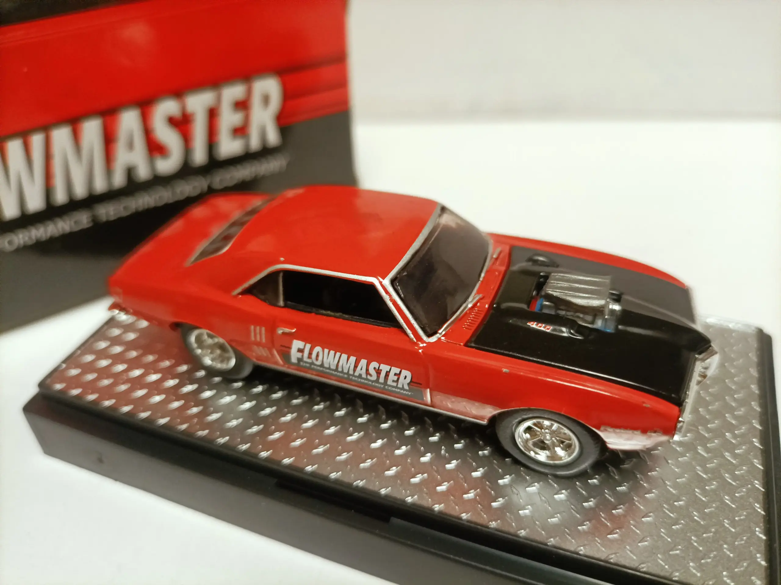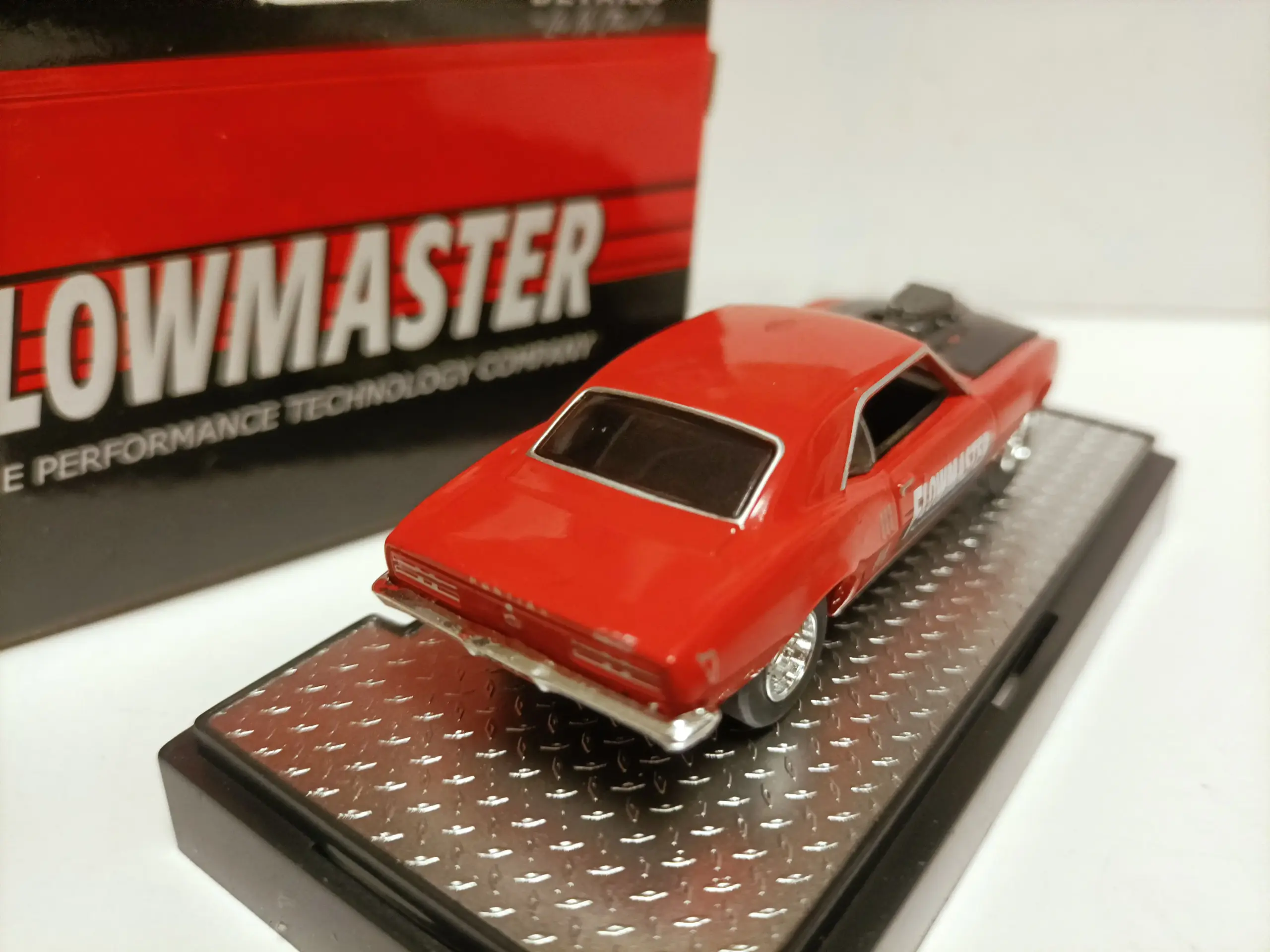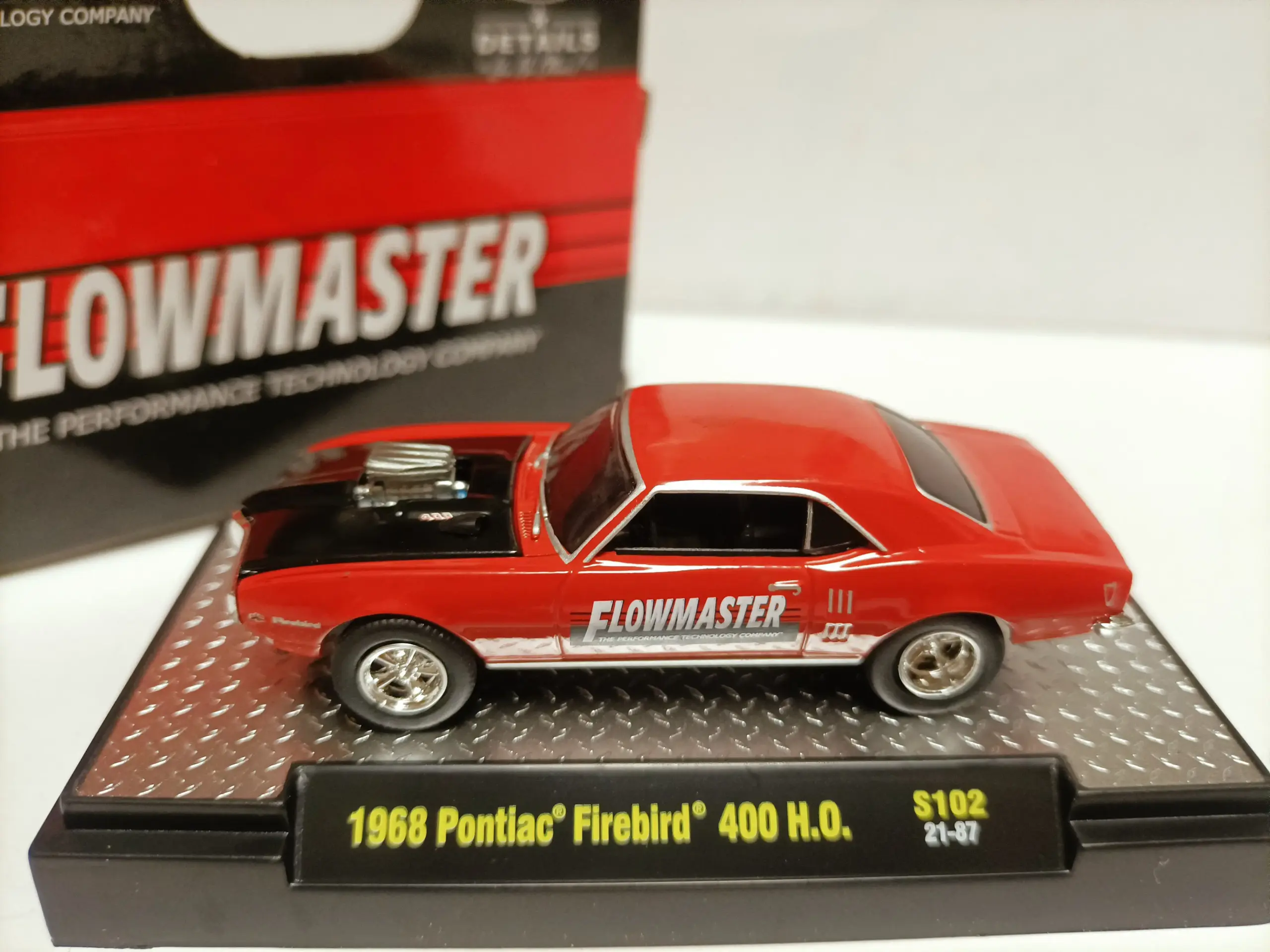 Experience the vintage charm of this detailed 1:64 scale diecast model of a 1968 Pontiac Firebird Two-door Muscle Car, crafted from durable metal. The sleek, vibrant red body is accented with bold black details on the hood, featuring a silver air intake scoop for added realism. Its streamlined fastback design includes dark-tinted windows, a finely detailed grille with clear headlights, and realistic silver rims on black tires. Perfect for display or collection, this model sits on a textured black diamond-plate stand, capturing the iconic sporty aesthetic of classic muscle cars. Suitable for ages 14 and older, it’s an excellent addition for automotive enthusiasts and collectors alike.