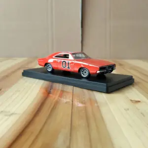 Transform your collection with this stunning 1:43 scale resin model of the iconic 1969 Dodge Charger R/T, famously known as the General Lee. Measuring approximately 12 centimeters long, 4.5 centimeters wide, and 3 centimeters tall, this static display piece captures the vintage sporty silhouette with smooth, slightly rounded lines and a flat hood. It features a vivid, solid red finish that authentically replicates the show car's daring look. Distinctive black racing numbers “01” outlined with white are showcased on each door, adding striking contrast. The detailed black grille, bumper, side mirrors, and realistic rubber tires with silver multi-spoke rims contribute to the model’s lifelike appearance. This collectible is perfect for display, gifting, or as a nostalgic tribute to classic TV.