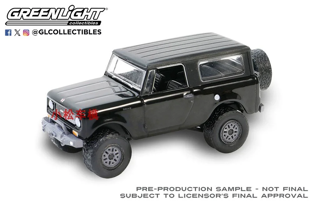 - This detailed 1:64 scale diecast replica boasts a rugged black exterior with a sleek metallic sheen, capturing the authentic style and off-road stance of the original 1969 Harvester Scout.