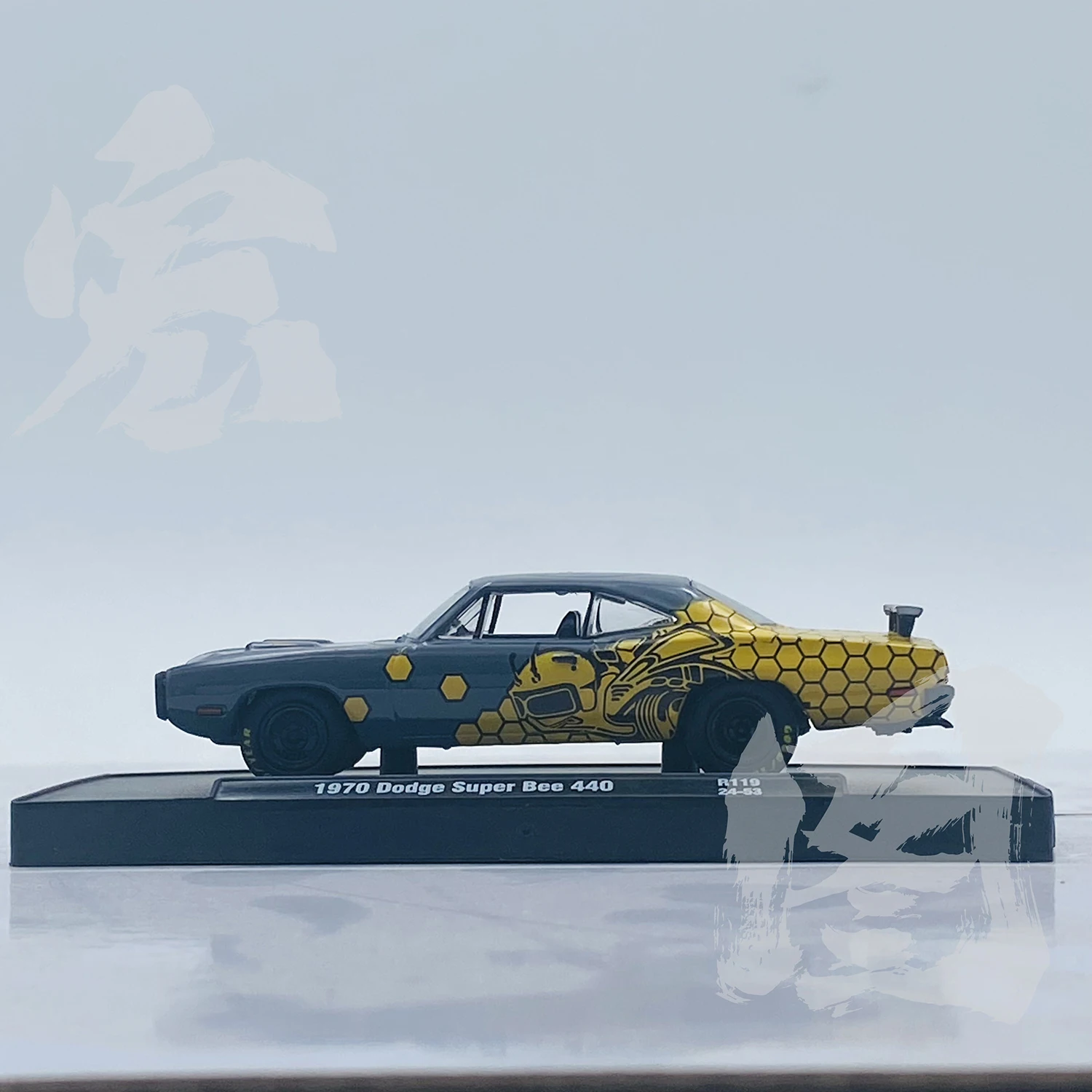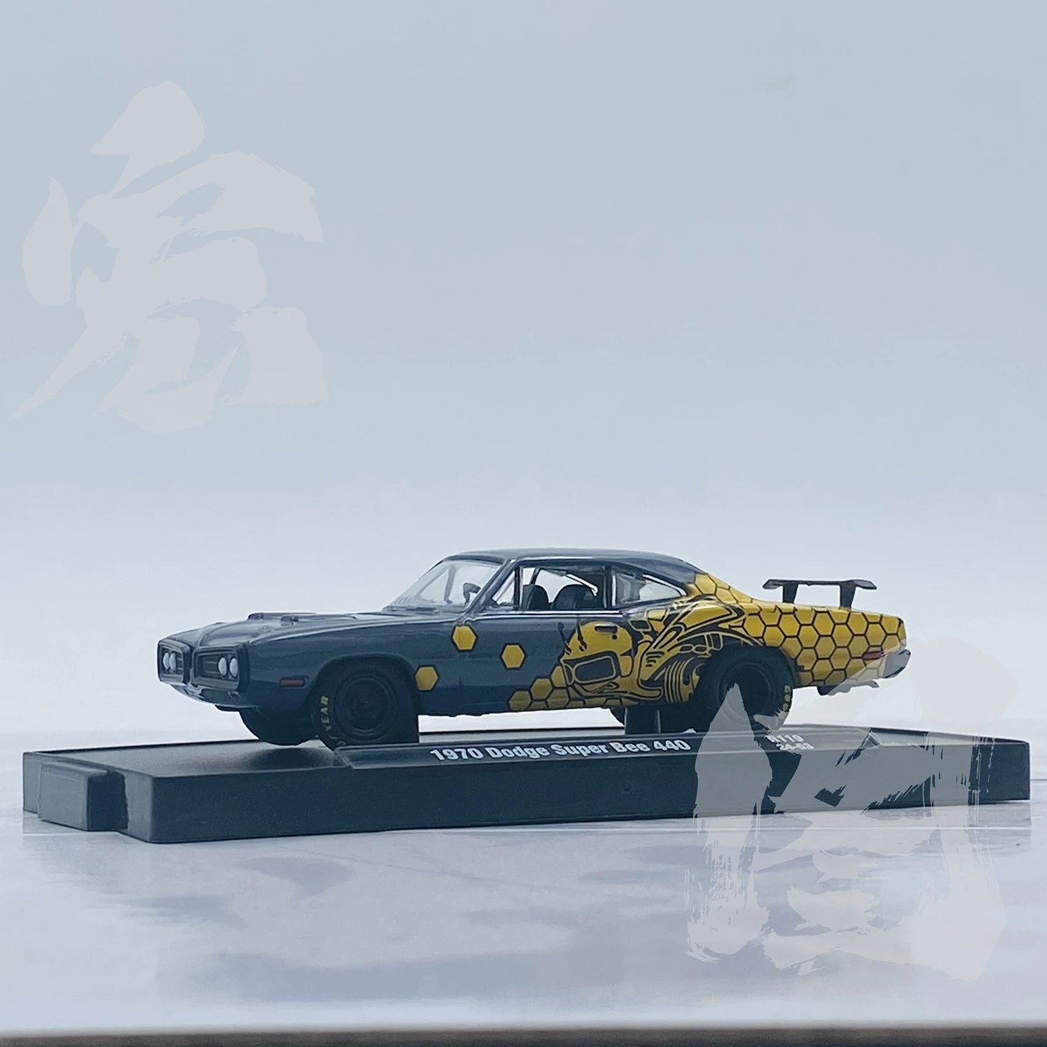 Immerse yourself in the classic muscle car era with this meticulously crafted 1970 Dodge Super Bee 440 diecast model. Designed with precision, it showcases a sleek, dark exterior complemented by striking yellow honeycomb and bee graphics on the right side, capturing the racing spirit of the original. The detailed alloy body features sharp lines, a sculpted hood with vents, dual headlights, and a rear spoiler, all faithfully reproduced for display enthusiasts. Its minimal interior and realistic black wheels complete the authentic look. Perfect for collectors and automotive lovers, this static display model adds vintage flair to any space. Imagine owning a piece of history that celebrates American muscle cars with style and accuracy.