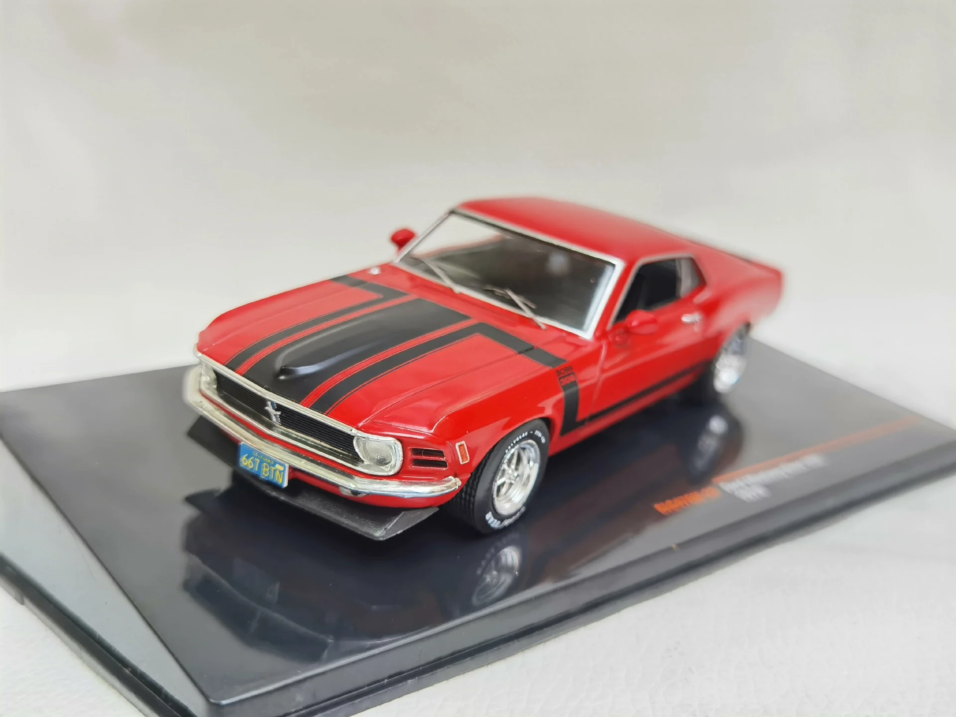 This meticulously crafted diecast model of the 1970 Ford Mustang Boss 302 in 1:43 scale offers a striking red body enhanced by bold black racing stripes bordered in white, capturing the iconic sporty aesthetic. Made from alloy and plastic, it features realistic details including transparent windows, multi-spoke metallic wheels with “Goodyear” printed tires, and accurately rendered front grille and bumper. Designed as a collectible, non-electric model suitable for ages 14 and above, it embodies high craftsmanship and attention to detail, making it the perfect addition for enthusiasts and collectors seeking a classic muscle car replica to display and admire.