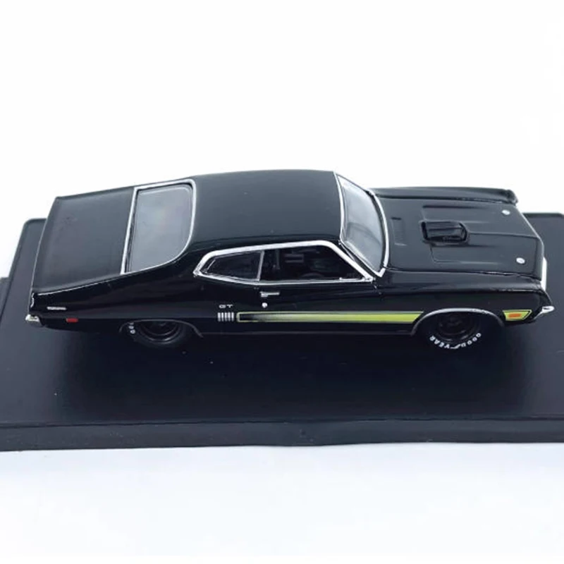 This exquisite model of the 1970 Ford Torino GT 429 SCJ captures the essence of retro muscle cars. Finished in sleek black and adorned with a striking lime green stripe, it emphasizes sportiness and style. Its 1:64 scale makes it a perfect compact collectible, handcrafted from durable alloy and plastic for an authentic feel. Featuring intricate details like air intakes, smooth curves, and black wheels with white lettering, this model stands out in any collection. Enhanced with a decorative base, it’s ideal for display in offices, studies, or bars. Imagine it as a centerpiece on your shelf, sparking conversations and admiration from fellow enthusiasts.